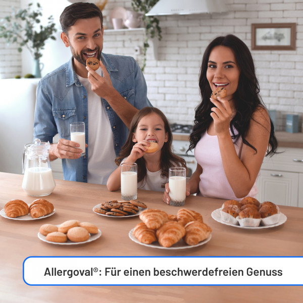 Wenn es bei Ihnen bereits in der Vergangenheit nach dem Genuss von Nahrungsmitteln zu einer lebensbedrohenden allergischen Reaktion (anaphylaktischer Schock) gekommen ist, sollten Sie auch während der Behandlung mit Allergoval Kapseln vorsichtshalber auf den Verzehr der betreffenden Nahrungsmittel verzichten.