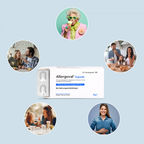 Erwachsene und Jugendliche ab dem 15. Lebensjahr nehmen viermal täglich 2 Kapseln Allergoval (entsprechend insgesamt 800 mg Natriumcromoglicat) ein. Kinder im Alter von zwei bis vierzehn Jahren erhalten viermal täglich eine Kapsel Allergoval (entsprechend insgesamt 400 mg Natriumcromoglicat). Bei Säuglingen und Kleinkindern zwischen zwei Monaten und zwei Jahren beträgt die Tagesdosis 20 - 40 mg/kg Körpergewicht. Sie sollte möglichst in gleich großen Einzeldosen vor jeder Mahlzeit verabreicht werden. Hierzu ist es gegebenenfalls erforderlich, den Inhalt einer Kapsel auf mehrere Gaben zu verteilen. Sofern erforderlich, kann die Dosis bei Erwachsenen auf viermal täglich 5 Kapseln Allergoval, bei Kindern im Alter von zwei bis vierzehn Jahren auf maximal viermal täglich 2 Kapseln Allergoval (entsprechend insgesamt 800 mg Natriumcromoglicat) erhöht werden. Eine Tagesdosis von 40 mg/kg Körpergewicht sollte jedoch nicht überschritten werden.