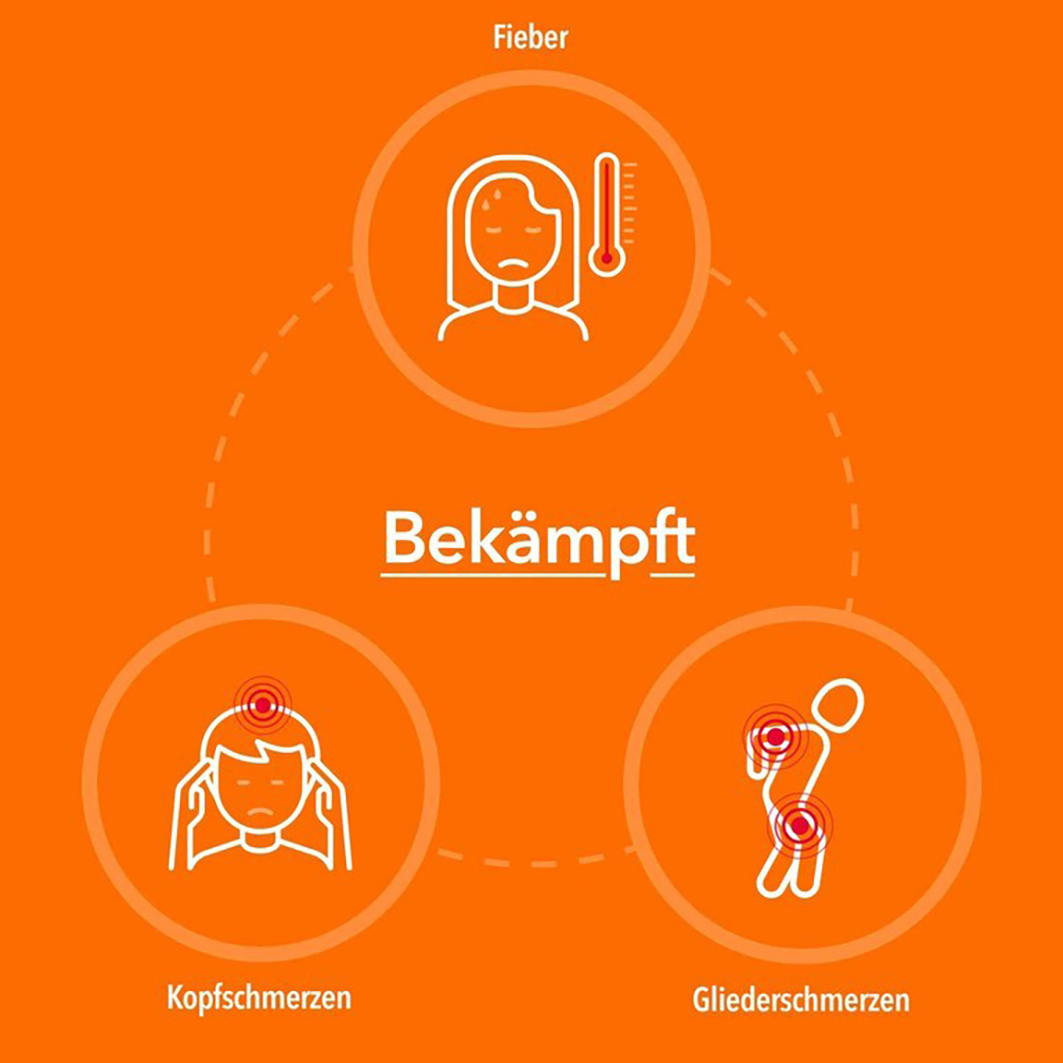 Wirkstoff: Acetylsalicylsäure. Anwendungsgebiete: Leichte bis mäßig starke Schmerzen, Fieber. Hinweis: Acetylsalicylsäure bei Kindern uund Jugendlichen mit fieberhaften Erkrankungen wegen des möglichen Auftretens einer Leber-Hirn-Erkrank. (Reye-Syndrom) nur auf ärztliche Anweisung anwenden, wenn andere Maßnahmen nicht wirken. Längere Zeit oder in höheren Dosen nicht ohne Befragen des Arztes anwenden. Warnhinweis: Bei Schmerzen od. Fieber ohne ärztlichen Rat nicht länger anwenden als in der Packungsbeilage vorgegeben! Apothekenpflichtig.