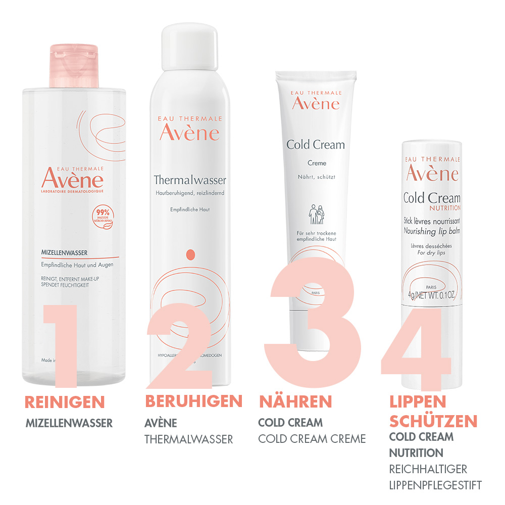 Das in der Formulierung enthaltene weiße Bienenwachs wirkt nährend und macht die Haut weich und geschmeidig. Das Avène Thermalwasser wirkt hautberuhigend, reizlindernd und entzündungshemmend.