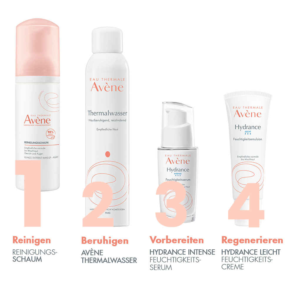 2. Avène Thermalwasser großzügig auf die Haut aufsprühen.