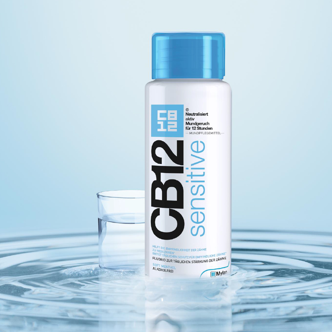 - Zähne putzen und danach 30 bis 60 Sekunden lang mit 10 Milliliter der Mundspülung CB12 Sensitive spülen. Etwas gurgeln und dann ausspucken. Sie sollten sie nicht schlucken.
