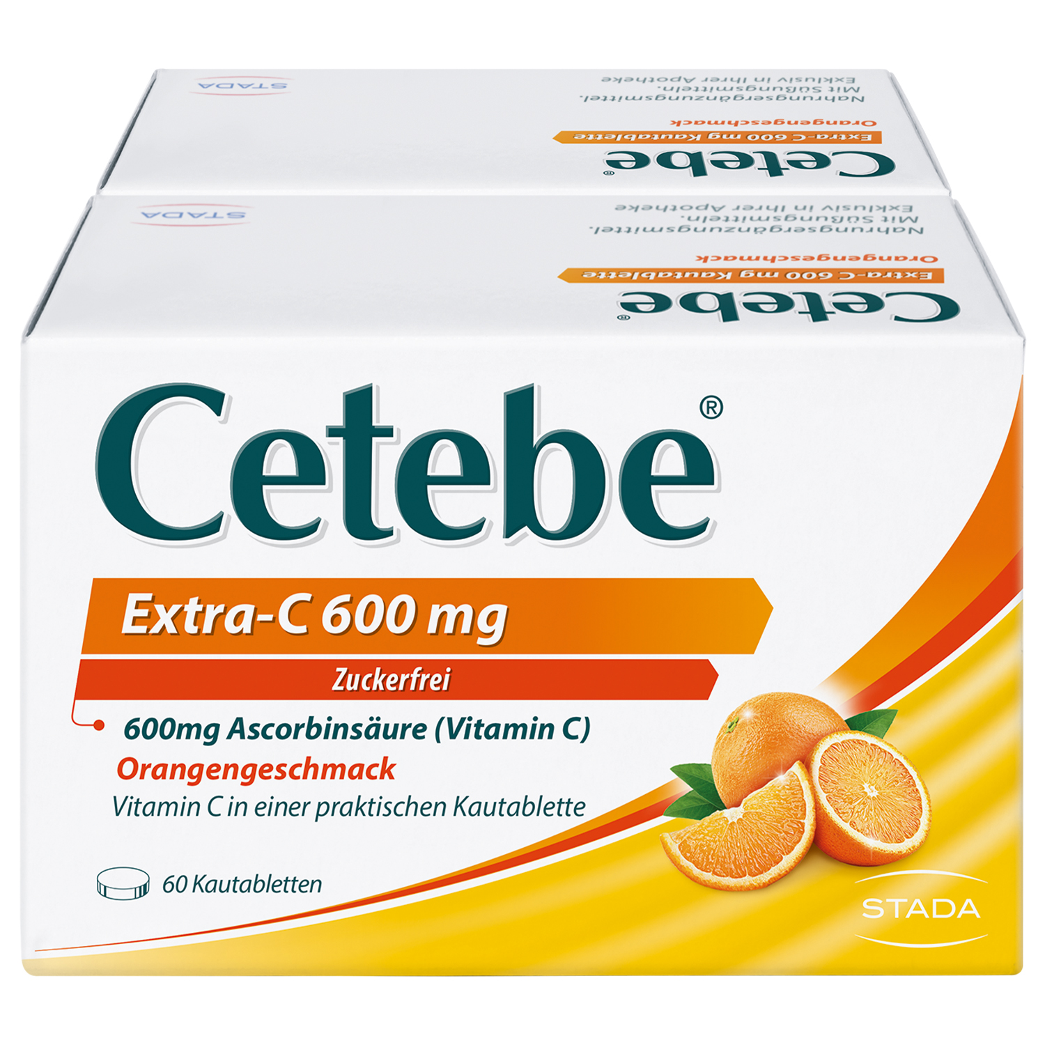 Eine Kautablette Cetebe® Extra-C 600 mg enthält 600 mg Vitamin C.