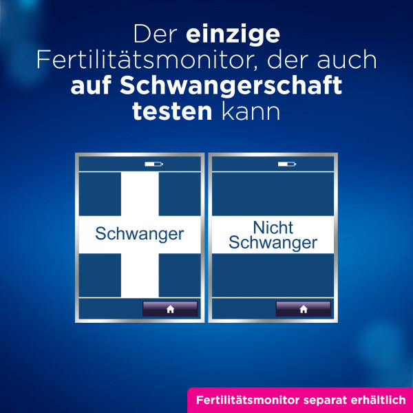 • Der Clearblue Fertilitätsmonitor Advanced ist der einzige Monitor, mit dem Sie auch einen Schwangerschaftstest durchführen können