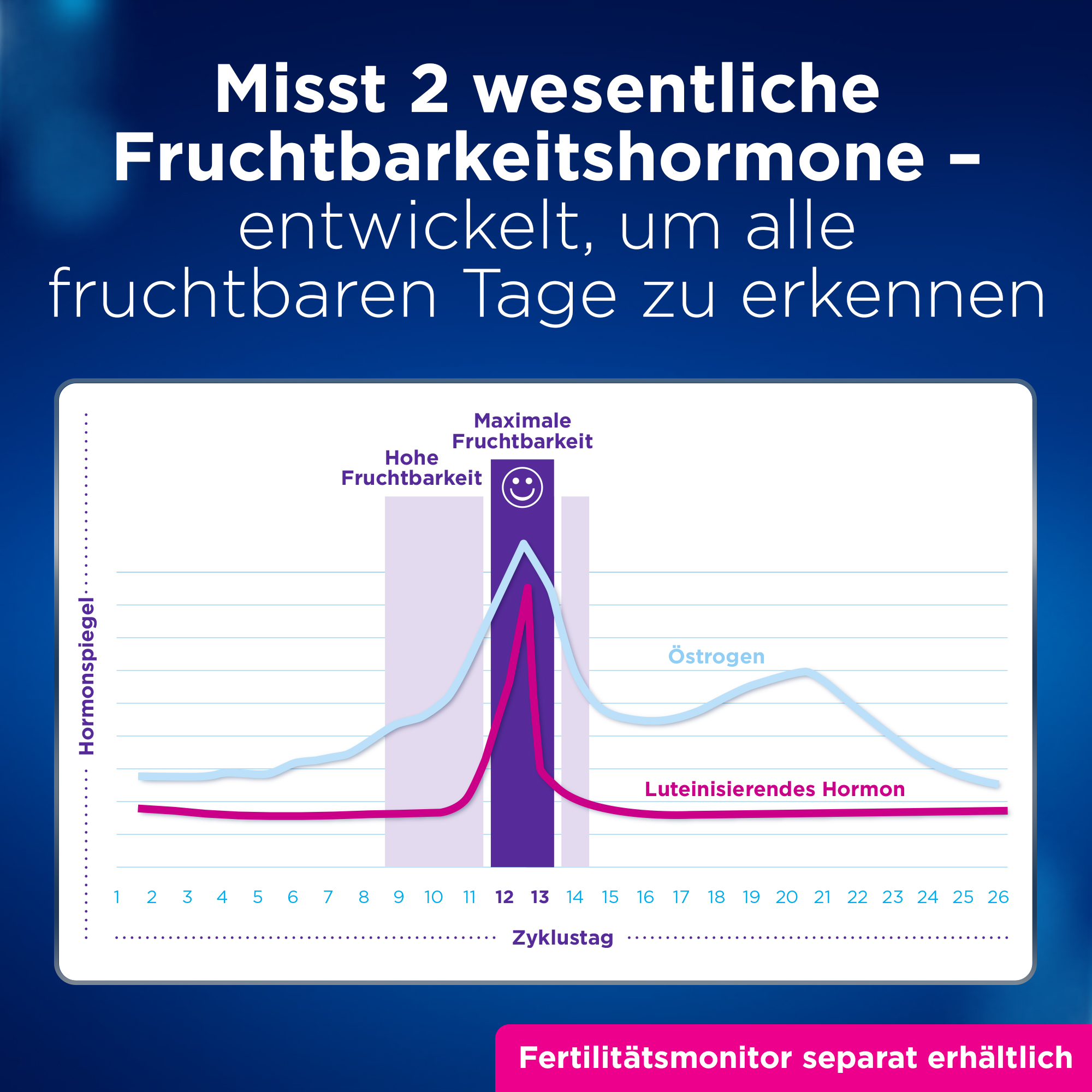 • Der Clearblue Fertilitätsmonitor Advanced misst 2 wesentliche Fruchtbarkeitshormone – entwickelt, um alle fruchtbaren Tage zu erkennen