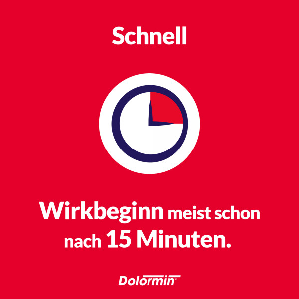 Hier setzt Dolormin® Extra an: Der darin enthaltende Wirkstoff Ibuprofen aus der Gruppe der nichtsteroidalen Antirheumatika hemmt die Enzyme, die an der Prostaglandinproduktion beteiligt sind. Dadurch wird die Schmerz- und Entzündungsreaktion gedämpft. Ibuprofen wird von dem körpereigenem Eiweißbaustein Lysin unterstützt, das für eine bessere Löslichkeit im Magen sorgt. Dadurch kann Dolormin® Extra seine schmerzlindernde Wirkung extra schnell entfalten.