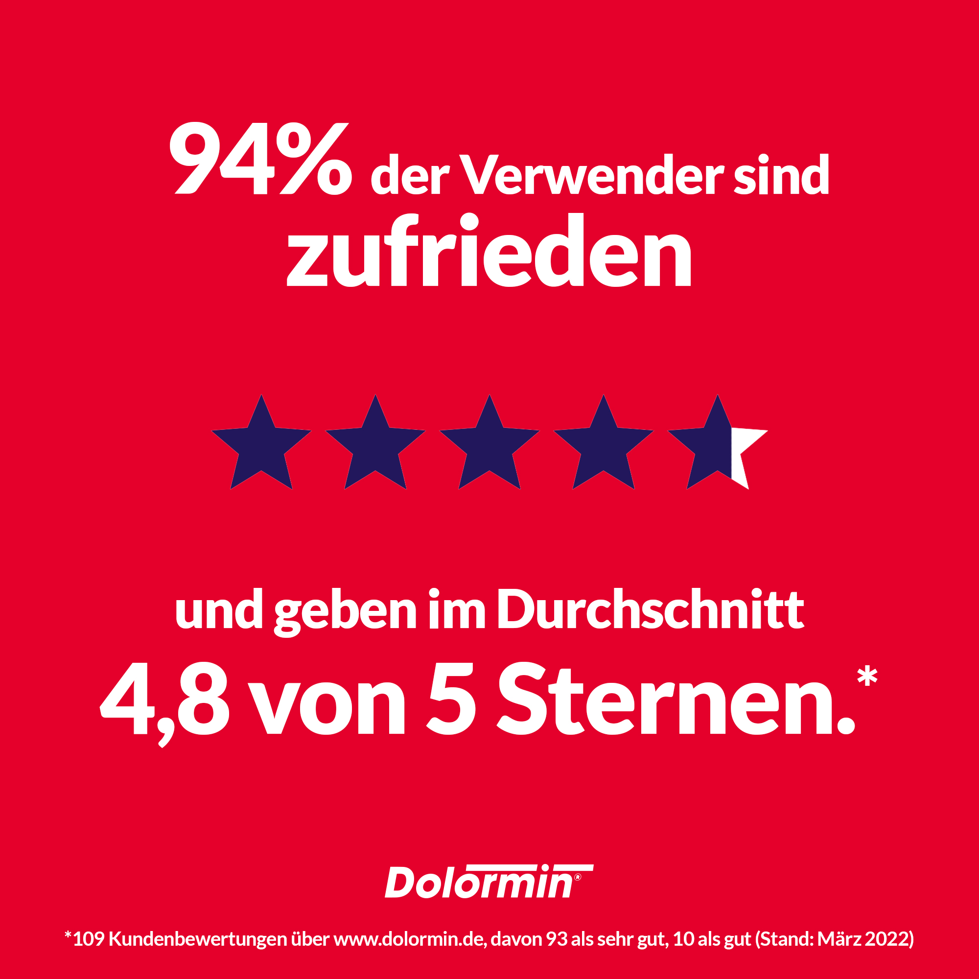 Wichtig: Dolormin® Extra sollte bei Kindern und Jugendlichen nicht länger als 3 Tage, bei Erwachsenen im Fall von Fieber nicht länger als 3 und im Fall von Schmerzen nicht länger als 4 Tage eingenommen werden. Sollten sich die Beschwerden in diesem Zeitraum nicht verbessern oder gar verschlimmern, holen Sie ärztlichen Rat ein.