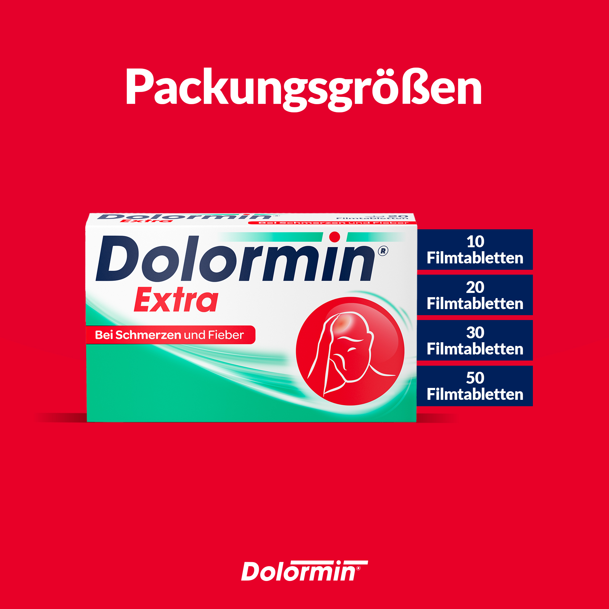 Dolormin® Extra gibt es in vier verschiedenen Packungsgrößen: 50, 30, 20 und 10 Stück.