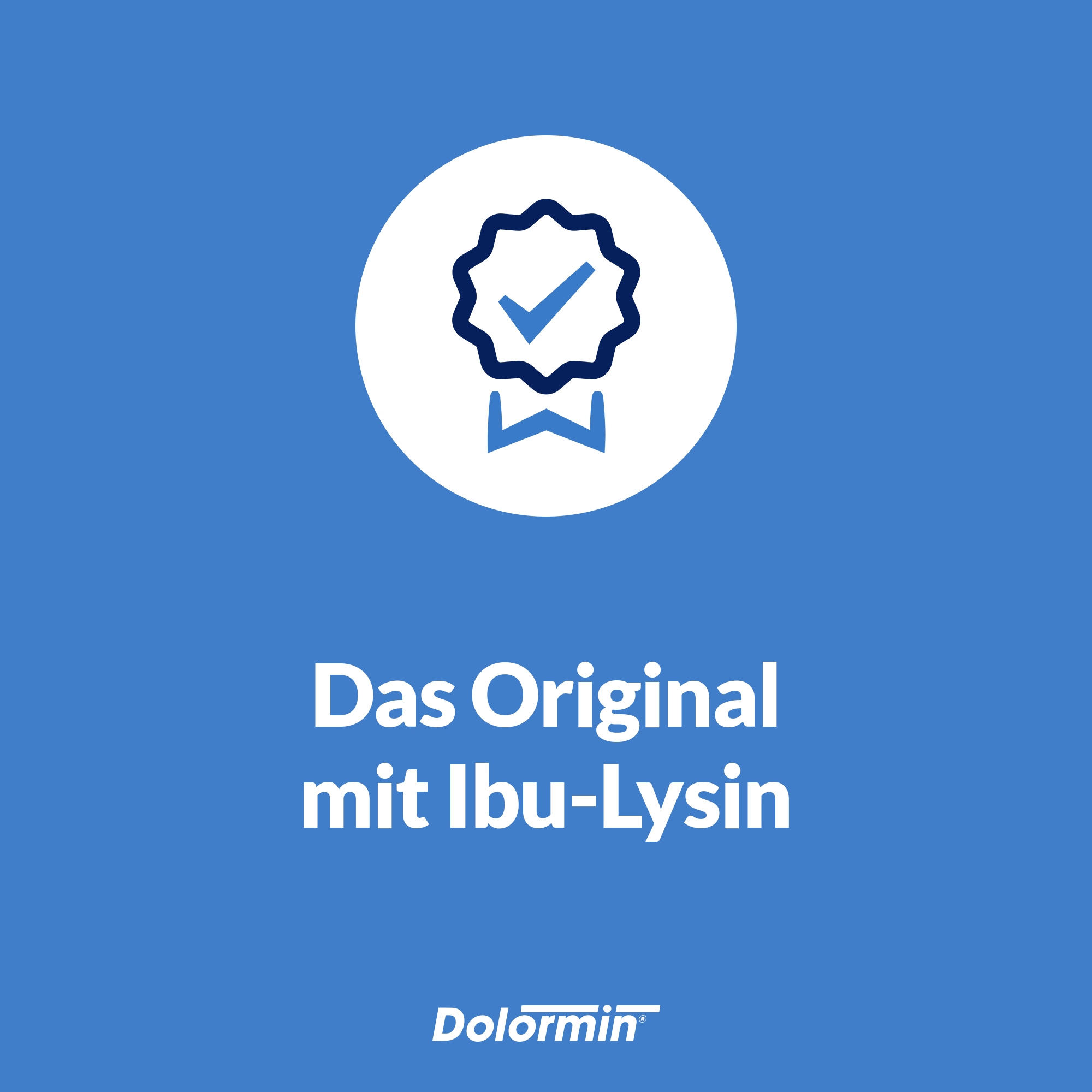Dolormin® Schmerztabletten enthalten 200 mg des Wirkstoffes Ibuprofen. Ibuprofen gehört zur Gruppe der nicht-steroidalen Antirheumatika und kann zur Linderung von Schmerzen, Fieber sowie Entzündungen beitragen. In Verbindung mit dem körpereigenen Baustein Lysin ist Ibuprofen besser im Magen löslich und kann so schnell vom Körper aufgenommen werden, sodass Schmerzen in kurzer Zeit gelindert werden.