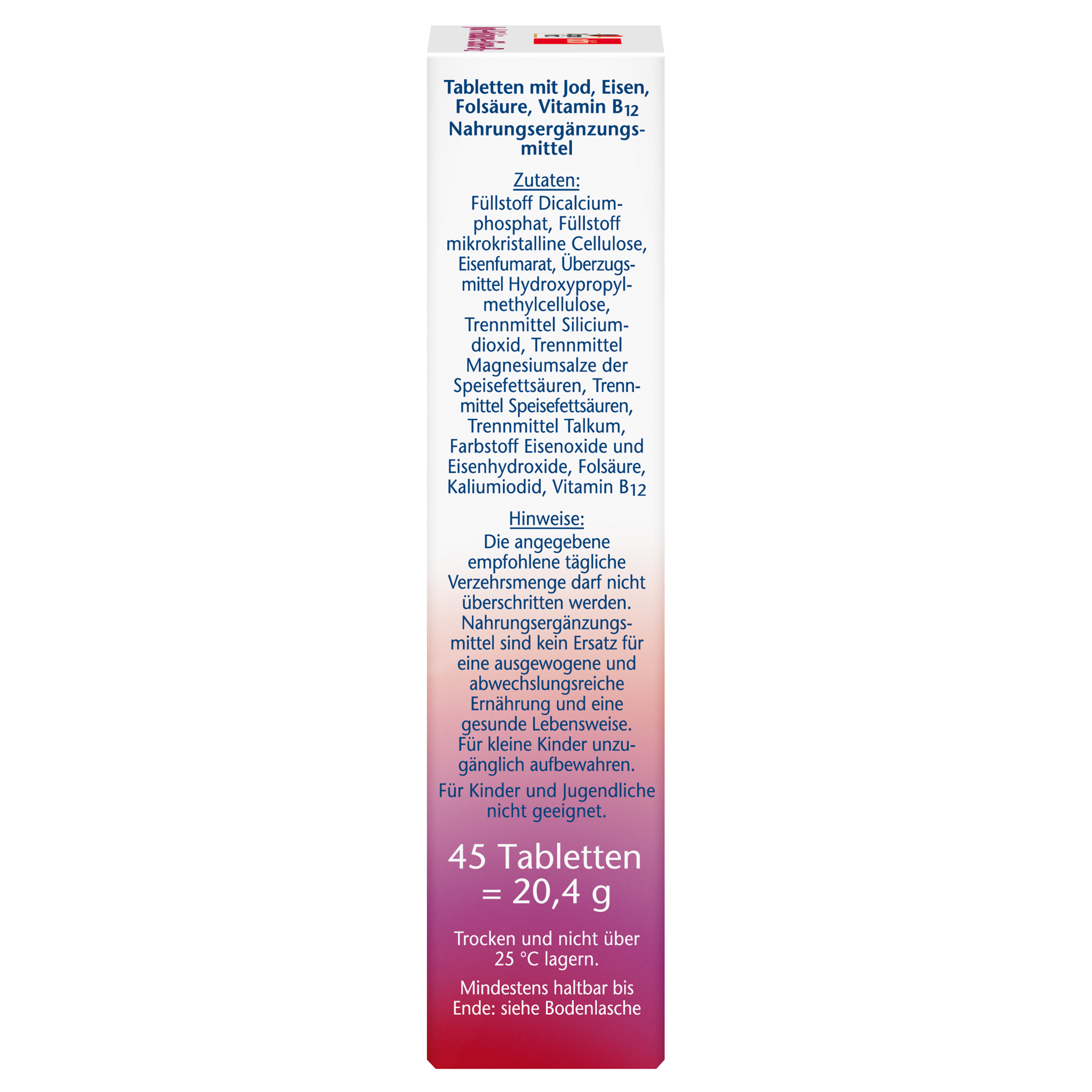 • 100 µg Jod unterstützt die normale Schilddrüsenfunktion