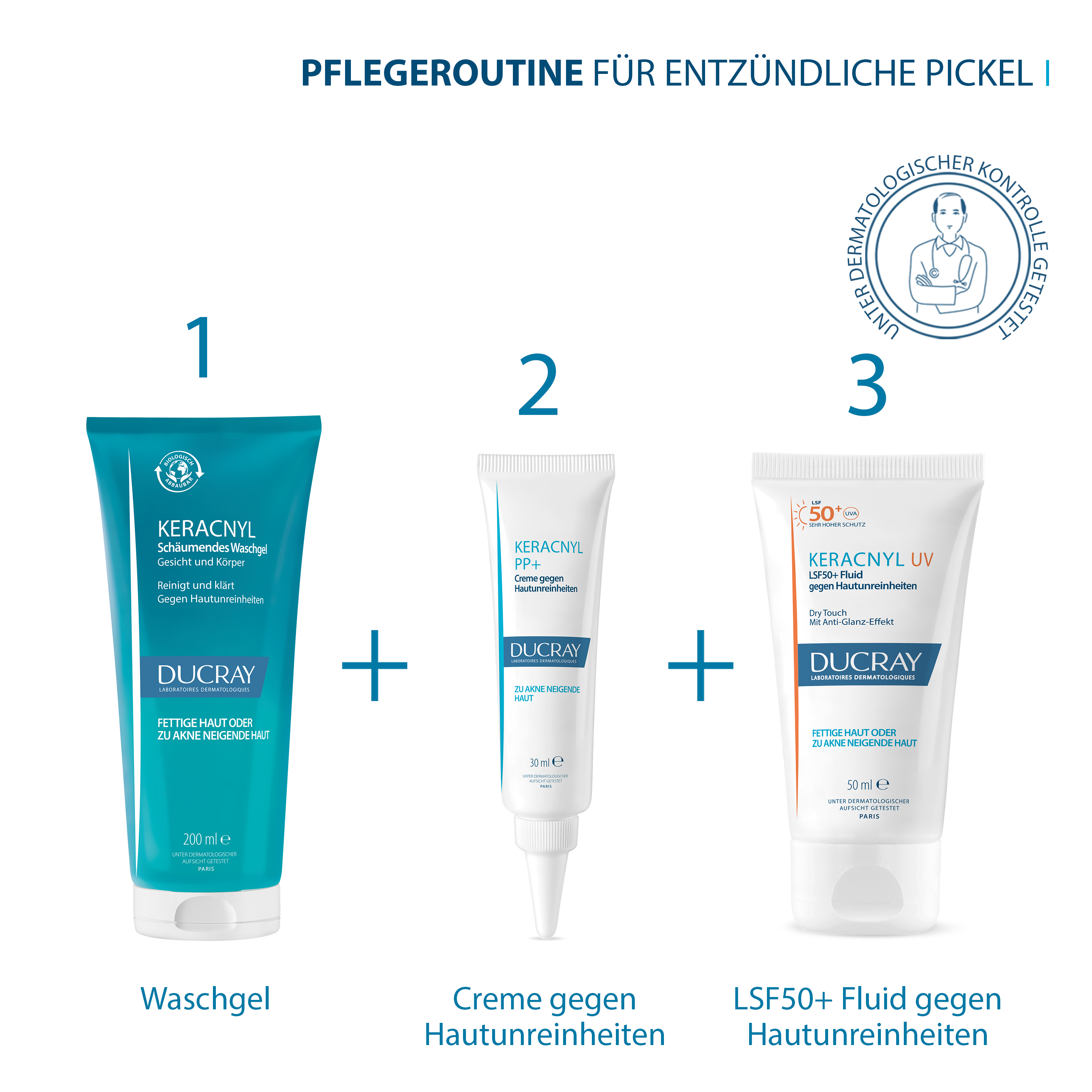KERACNYL Waschgel reinigt und klärt sanft die zu Akne neigende Haut. Das Waschgel ist seifenfrei und für Gesicht und Körper geeignet. Aufgrund der sehr guten Verträglichkeit ist das Waschgel auch in Kombination mit topischen Anti-Akne-Präparaten erwiesen. Das Waschgel ist nicht komedogen und basiert auf einer biologisch abbaubaren Formulierung.