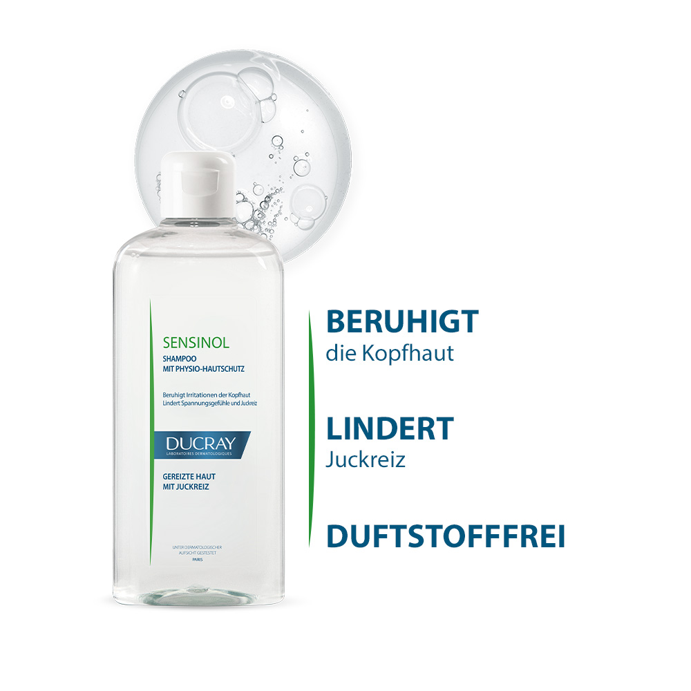 - Mildes Pflegeshampoo für juckende, irritierte und gereizte Kopfhaut.