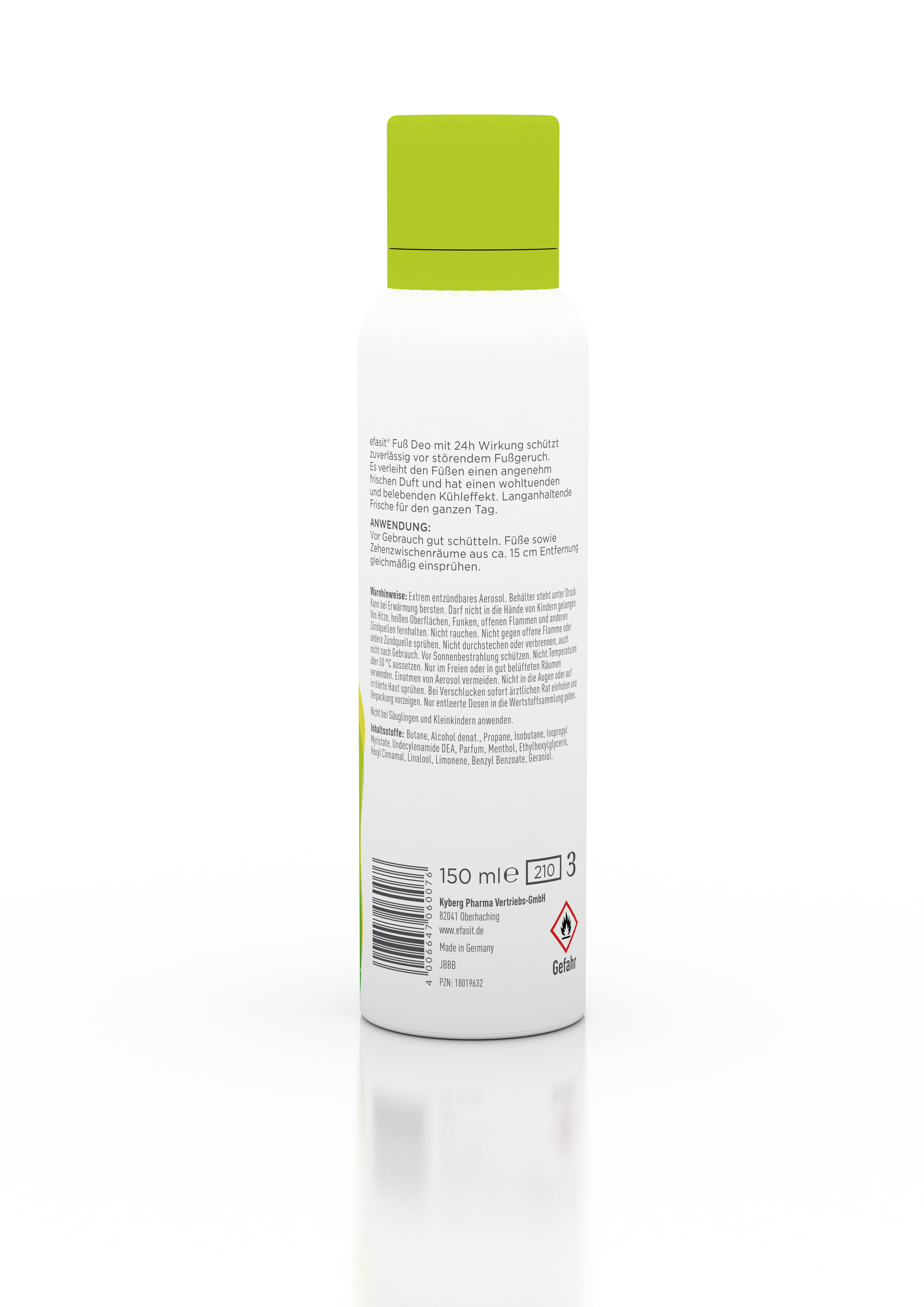 efasit® CLASSIC Fuß Deospray wirkt erfrischend kühl, beugt Fußpilz vor und gibt den Füßen Frische für den ganzen Tag. Außerdem reduziert es die Schweißbildung und sorgt fürangenehm duftende Füße – auch beim Sport, bei warmemWetter und luftundurchlässigen Schuhen.