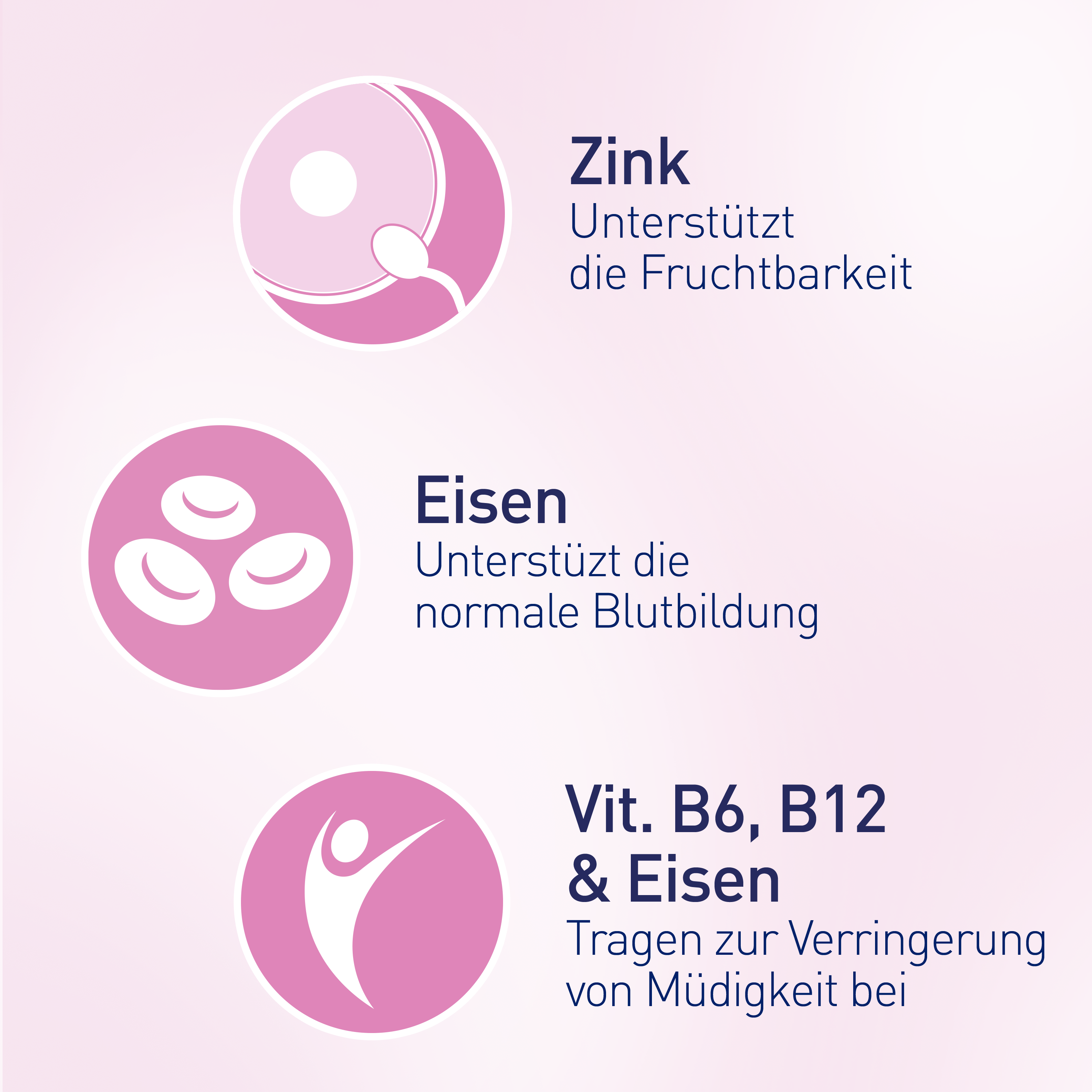 • helfen, den Mehrbedarf an Nährstoffen zu decken, der bei einem Kinderwunsch und im ersten Schwangerschaftsdrittel besteht.