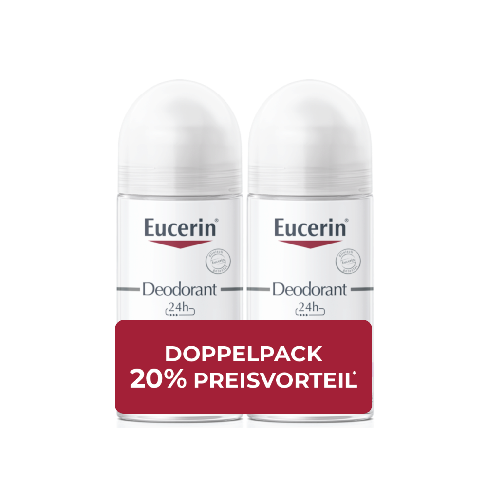 Das Eucerin Deodorant Empfindliche Haut 24h Roll-on bietet zuverlässigen Deo Schutz für empfindliche Haut. Mit dem Deodorant wird nachweislich die Aktivität der geruchsbildenen Bakterien reduziert und es wirkt so für 24 Stunden gegen Körpergeruch im Achselbereich. Dabei ist der Deo Roller sanft zu empfindlicher Haut und auch bei Deo-Unverträglichkeit geeignet.