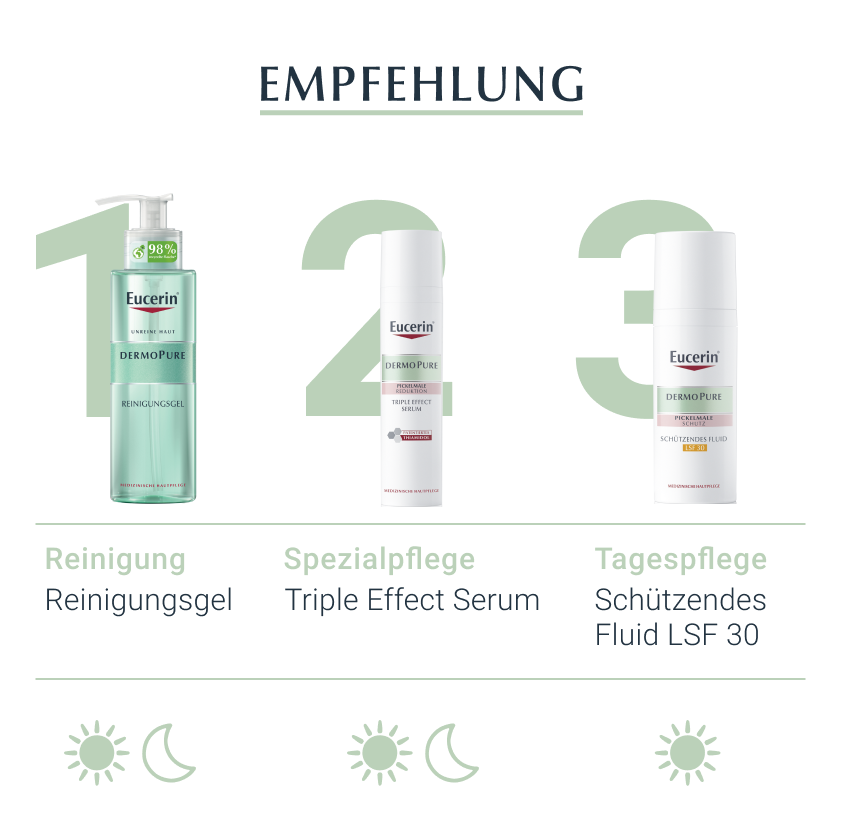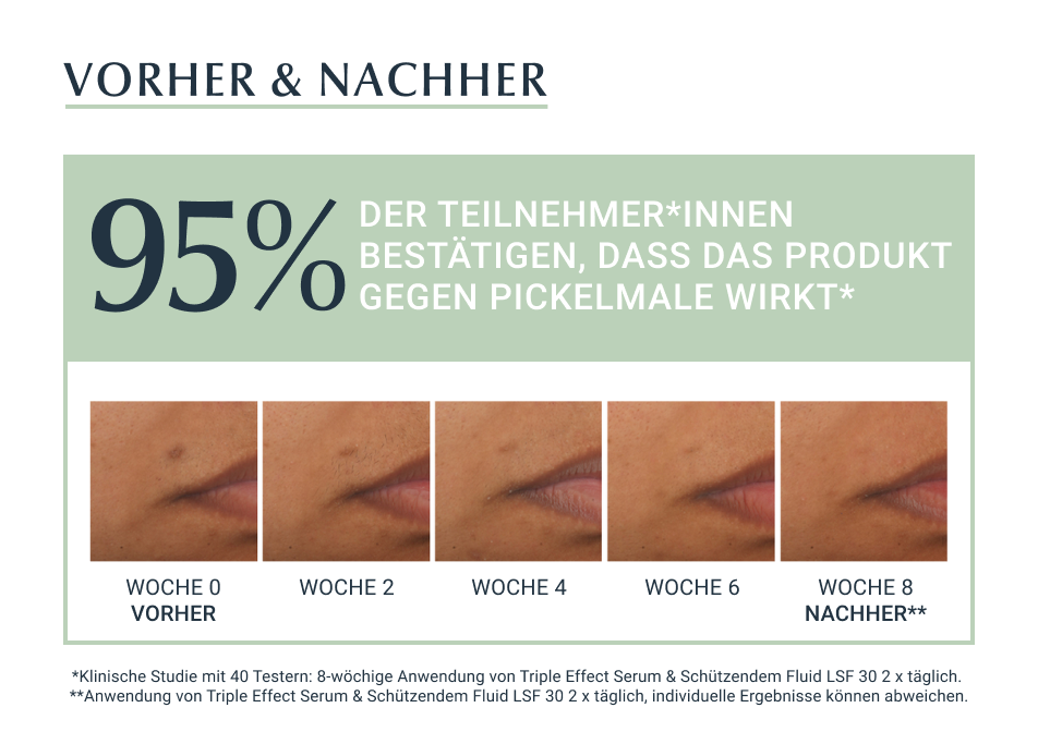 - Hautunreinheiten, Pickel, Mitesser und Akne werden reduziert, ein Wiederauftreten verhindert