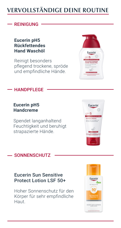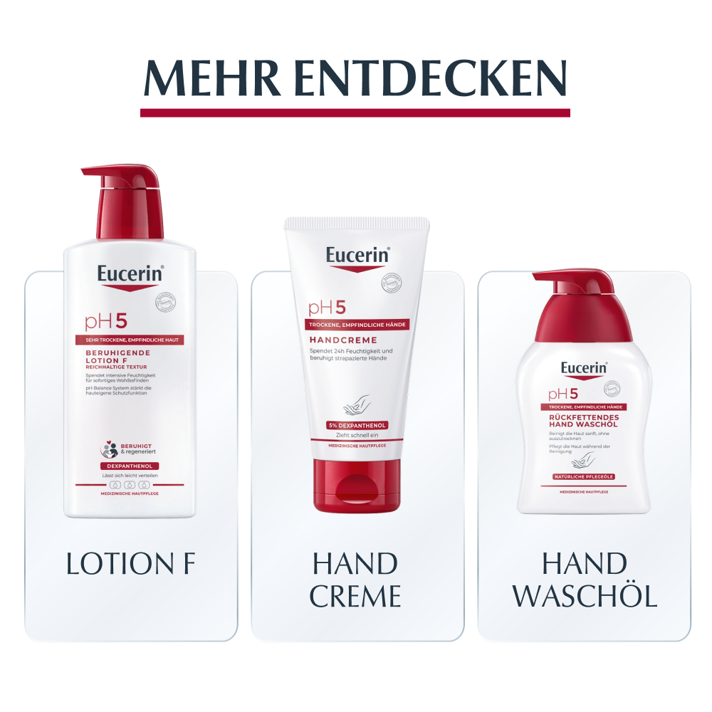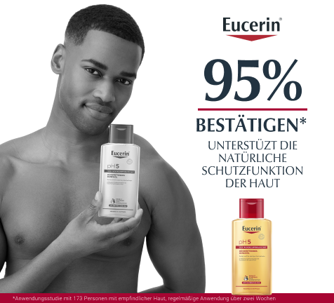 - Für beste Ergebnisse in Kombination mit einem feuchtigkeitsspendenden Pflegeprodukt aus der Eucerin pH5 Produktserie verwenden