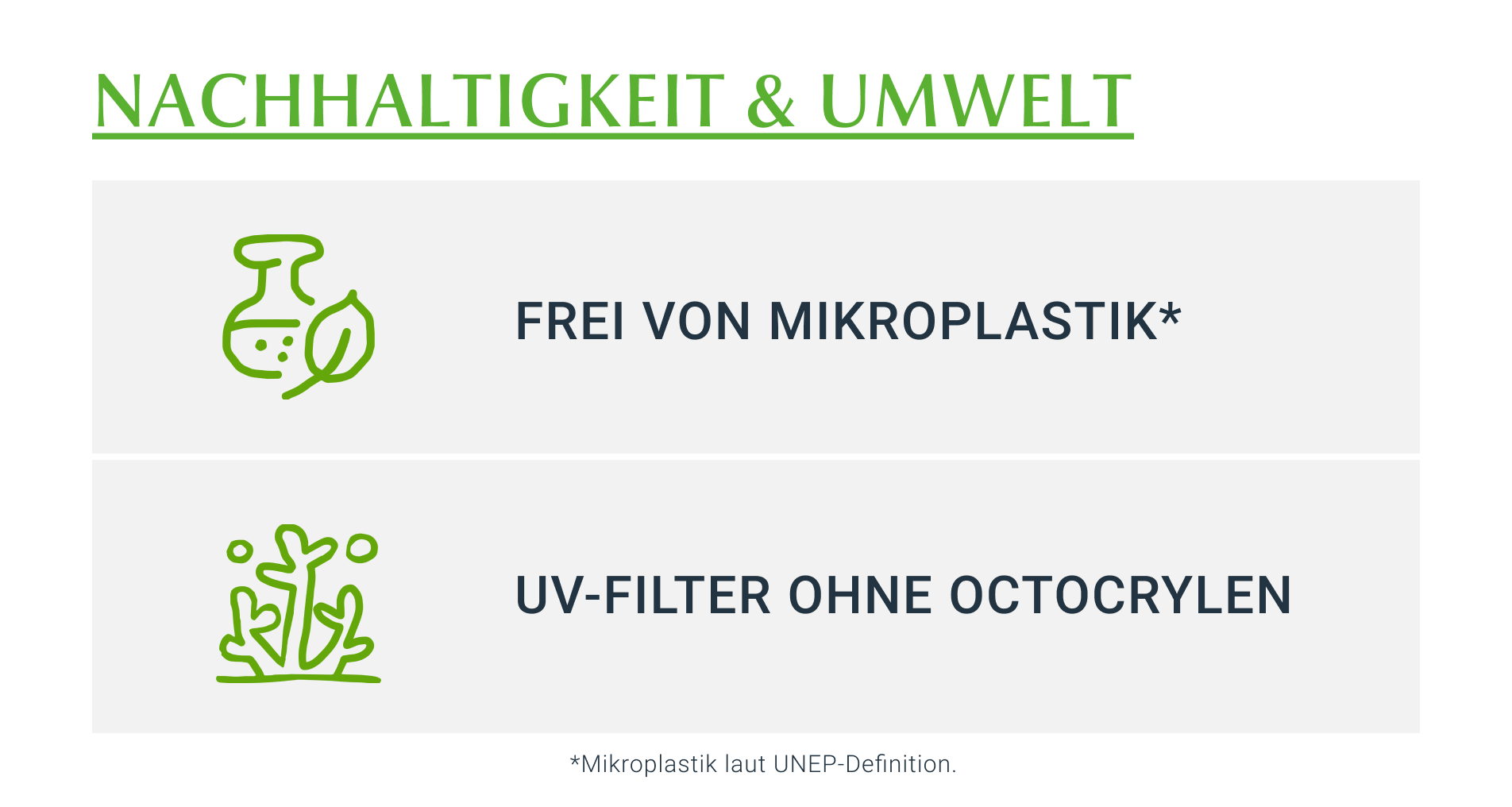 Mehr Sicherheit als nur vor UV-Strahlung: Die Advanced Spectral Technology kombiniert UVA/UVB-Filter für hohen UV-Schutz und Licochalcone A zur Neutralisation freier Radikale, ausgelöst durch UV- und hochenergetisches sichtbares Licht.