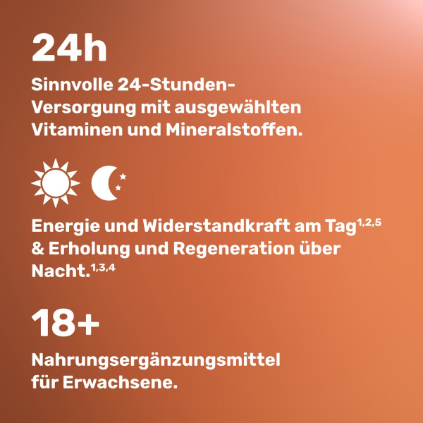 - 24-Stunden-Versorgung mit ausgewählten Vitaminen und Mineralstoffen