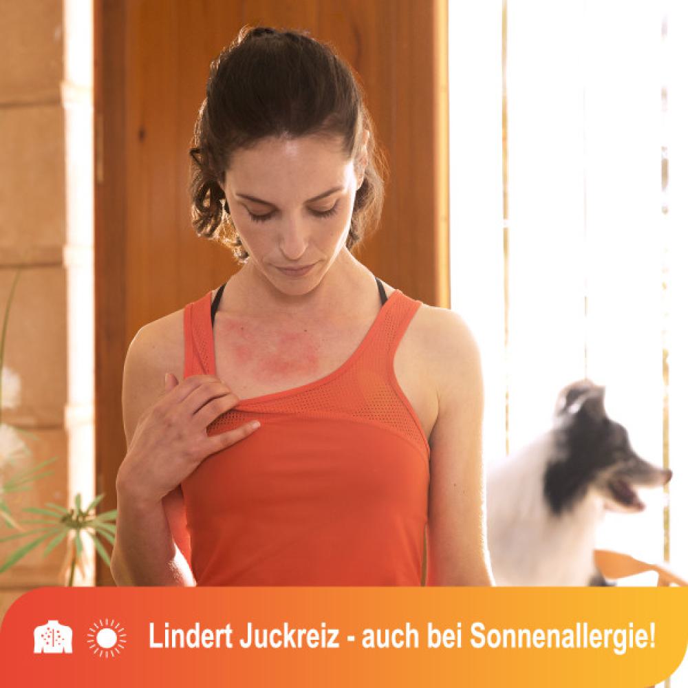- Bekämpft die Symptome der entzündeten Haut z.B. bei Sonnenbrand (ersten Grades), Kontaktallergie, leichter Neurodermitis, Ekzemen, Sonnenallergie oder entzündeten Insektenstichen