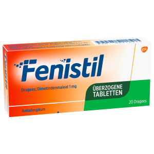 Hilfe bei allergischen Erkrankungen und Juckreiz. Allergische Symptome wie Juckreiz und Schnupfen können mehr als unangenehm sein. Gut, dass es effektive und schnelle Hilfe gibt. Fenistil Dragees mit dem bewährten Antihistaminikum Dimetindenmaleat wirken antiallergisch und lindern Symptome, die bei einer allergischen Reaktion durch die vermehrte Ausschüttung von Histamin ausgelöst werden.