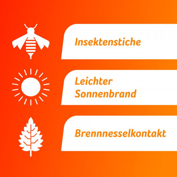 • Kühlende Hautpflege für gereizte und juckende Haut, z. B. bei Insektenstichen und Sonnenbrand