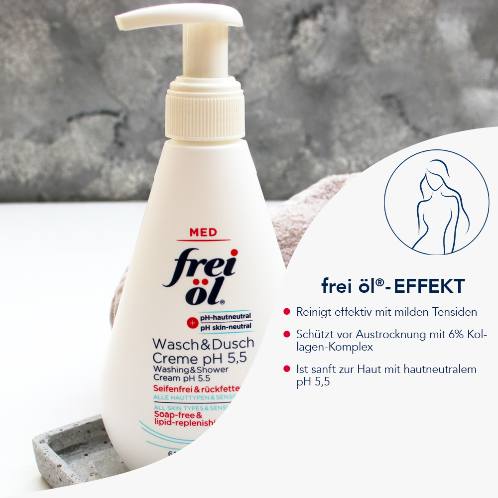 Die seifenfreie frei öl® Wasch&DuschCreme pH 5,5 mit zartem Duft