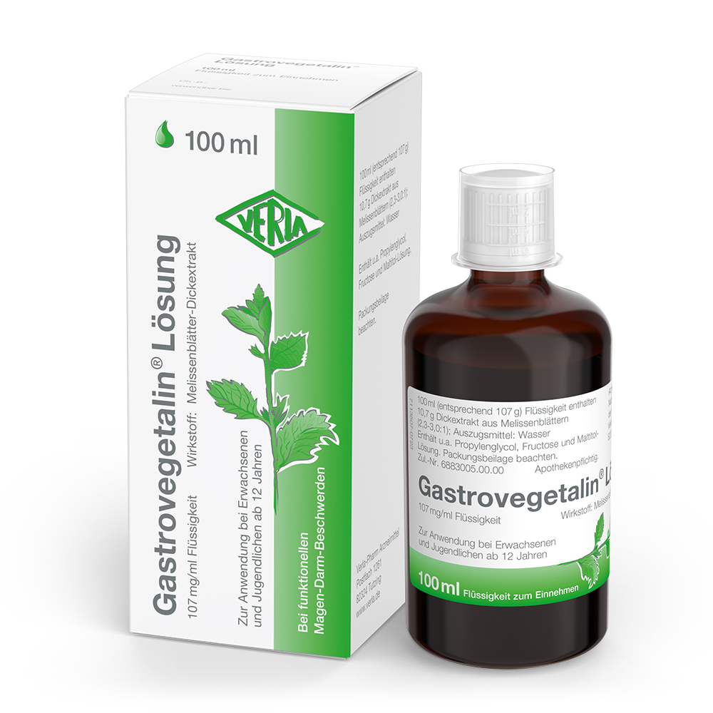 Gastrovegetalin® ist ein bewährtes Mittel zur Behandlung von funktionellen Magen-Darm-Störungen, die oft auch „Reizmagen“ oder „Reizdarm“ genannt werden. Mit Gastrovegetalin® können die auftretenden, sehr unangenehmen Beschwerden schnell und auf sanfte Art und Weise gelindert werden. Als Wirkstoff wird dafür ein hochwertiger Extrakt aus Melissenblättern verwendet, der Magen und Darm vor nervöser Reizüberflutung schützt, das vegetative Nervensystem im Bereich des Verdauungstraktes beruhigt und krampflösend wirkt. Gastrovegetalin® ist alkoholfrei, pflanzlich und sehr gut verträglich. Nach dem Öffnen ist Gastrovegetalin® 6 Monate ungekühlt haltbar.