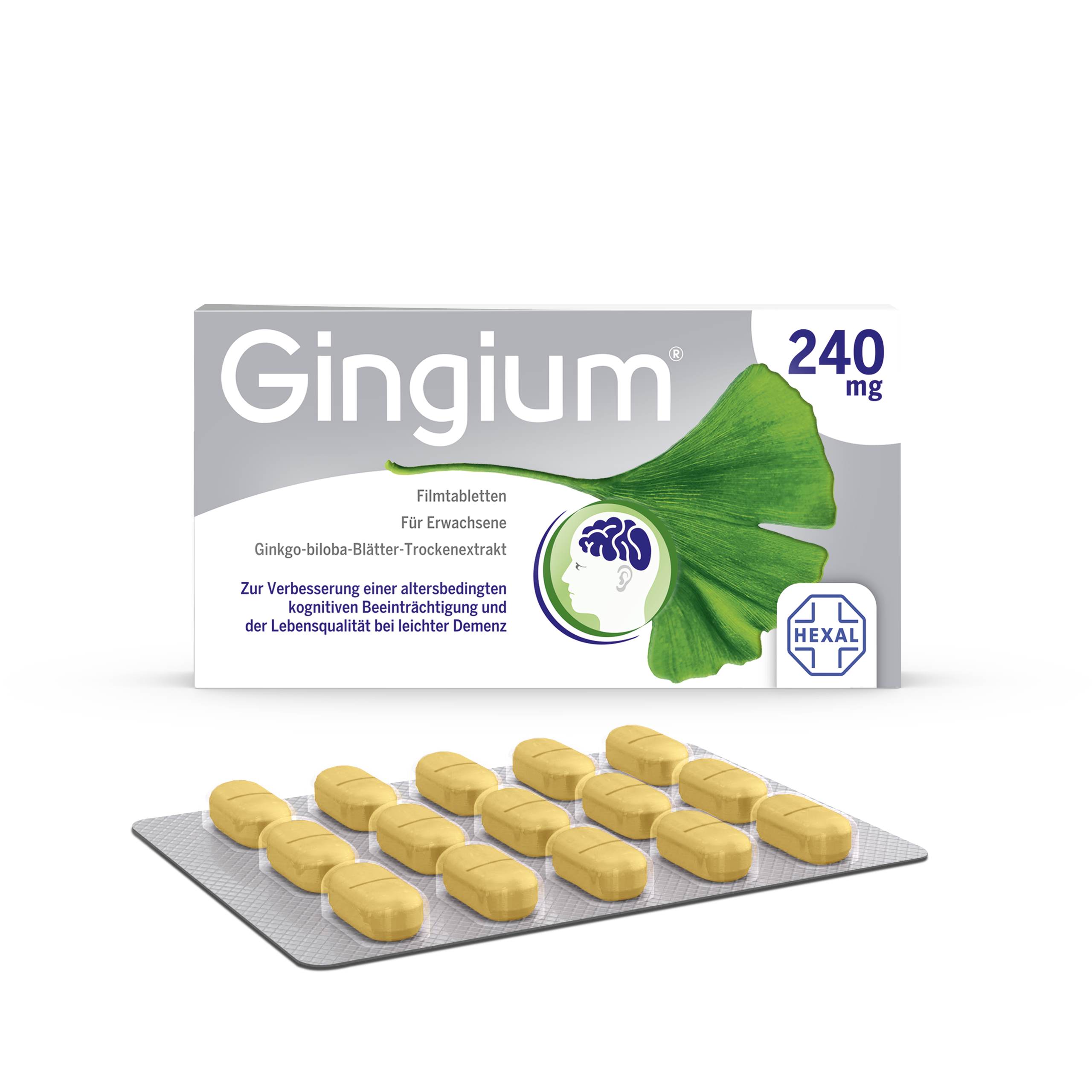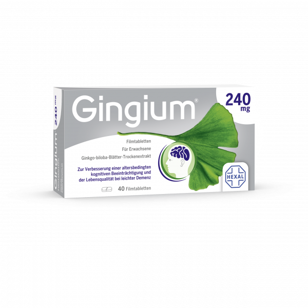 Gingium® von HEXAL ist das rezeptfreie Präparat zur Behandlung von Gedächtnis- und Konzentrationsstörungen im Rahmen eines dementiellen Syndroms.