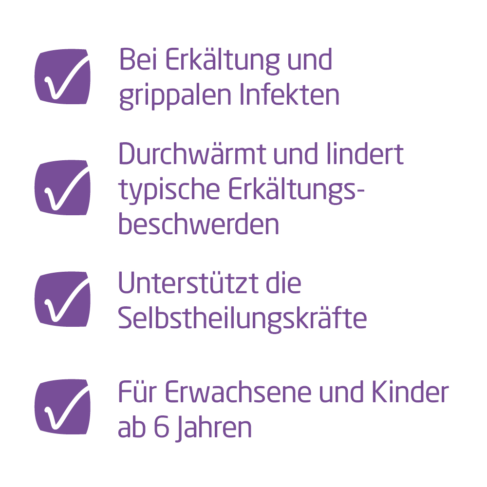 Die Weleda Infludo® Mischung eignet sich zur Stärkung der körpereigenen Abwehrkräfte bei grippalen Infekten. Nach Ausbruch einer Erkältung eingenommen, entfaltet der enthaltene Phosphor in potenzierter Form seine belebende Wirkung im Körper. Er regt die Selbstheilungs- und Wärmekräfte im Körper an, die zur Überwindung der Erkältung beitragen. Gleichzeitig lindern ausgewählte pflanzliche Zubereitungen akute Beschwerden: Eisenhut lindert erkältungsbedingte Kopf- und Gliederschmerzen und reguliert bei Fieber die Körpertemperatur. Zaunrübe und Wasserhanf harmonisieren den Flüssigkeitsorganismus, der sich in vermehrter Schleimbildung zeigt. So unterstützt Infludo® die Heilung und den Genesungsprozess.