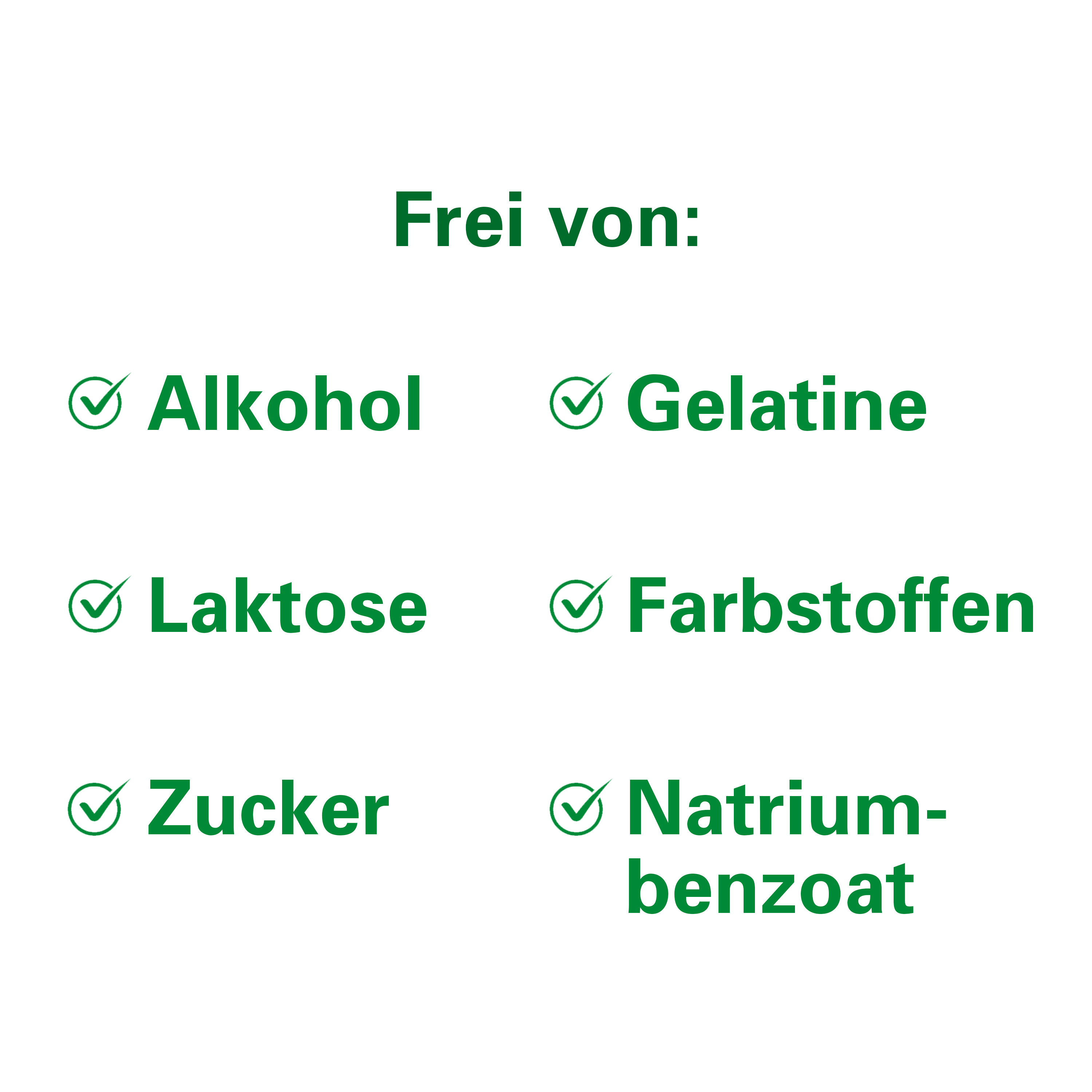 - Ohne Alkohol und Farbstoffe, Natriumbenzoat, Zucker und Laktose