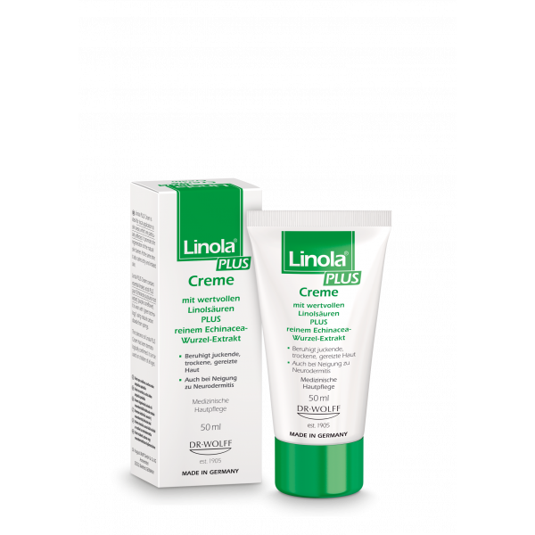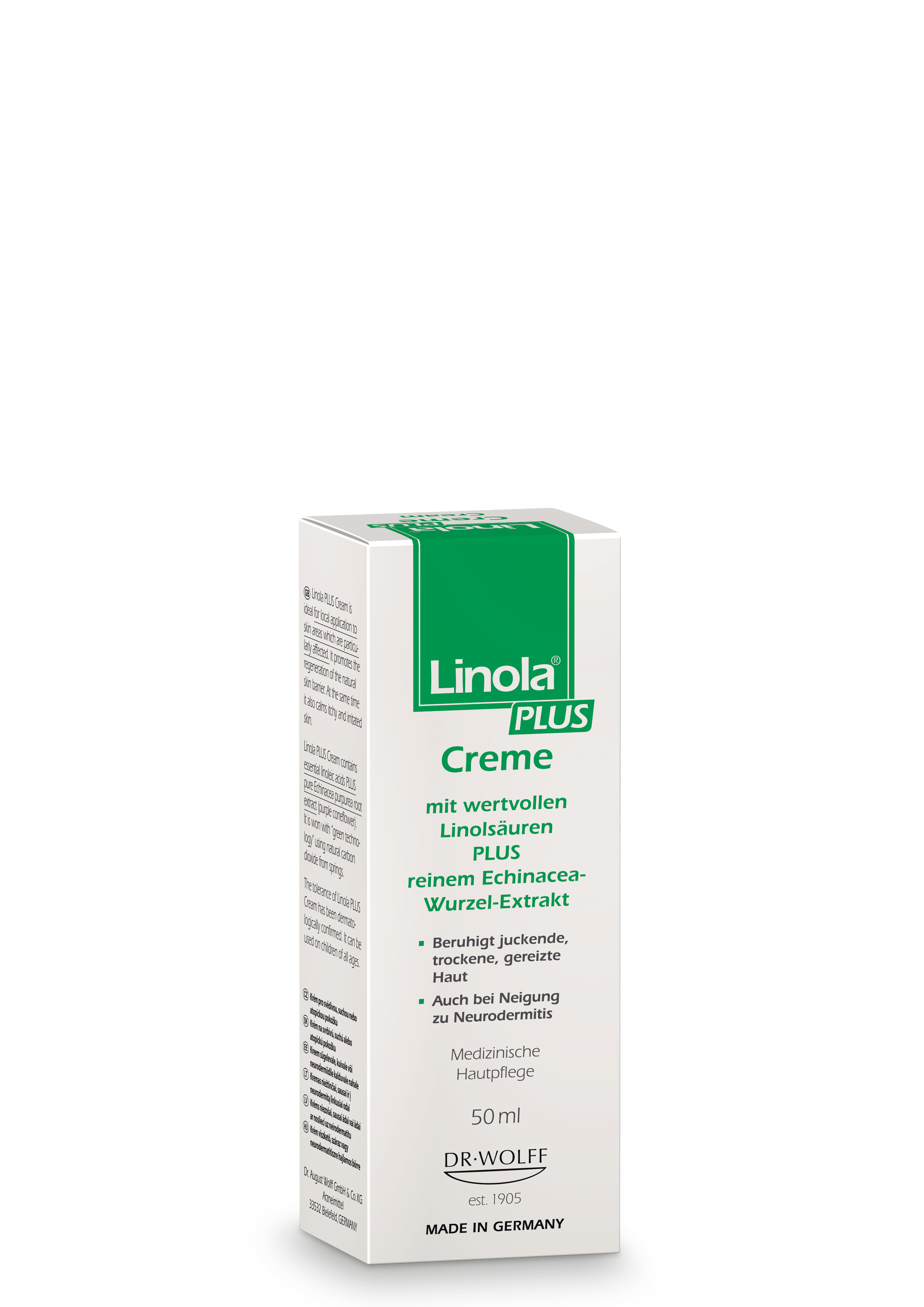 Linola PLUS Creme ist Intensivpflege der besonderen Art bei juckender, trockener und gereizter Haut. Sie wurde entwickelt zur Anwendung auf einzelnen, besonders betroffenen Hautstellen. Sie zieht auch schnell ein. Den charakteristischen Duft auf der Haut verdankt sie dem Echinacea-Wurzel-Extrakt. Linola PLUS Creme zeichnet sich durch ihre einzigartige Formulierung aus wertvollem Linolsäurereichen Distelöl sowie einem besonderen Pflanzenextrakt aus der Wurzel der Echinacea purpurea (Purpur-Sonnenhut) aus. Traditionell wurden und werden Extrakte aus Echinacea purpurea wegen ihrer gesundheitsfördernden Eigenschaften bei verschiedensten Hautproblemen eingesetzt. Der in Linola PLUS verwendete Extrakt wird mithilfe „Grüner Technologie“ schonend und besonders rein gewonnen. Hierbei wird allein natürliche Quellkohlensäure verwendet. Im Gegensatz zu anderen Verfahren können bei dieser Art von Herstellung keine Lösungsmittelrückstände im Extrakt zurückbleiben. In einem geschlossenen Kreislaufsystem wird die eingesetzte Kohlensäure vollständig recycelt.