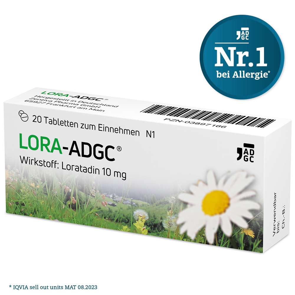 Lora ADGC® ist ein Antiallergikum zur Behandlung von Allergien und Allergiebeschwerden wie Heuschnupfen, Juckreiz, tränenden Augen und Hautrötungen. Die Allergie-Tablette wirkt langanhaltend und ist gut verträglich. Bereits für Kinder ab 2 Jahren.