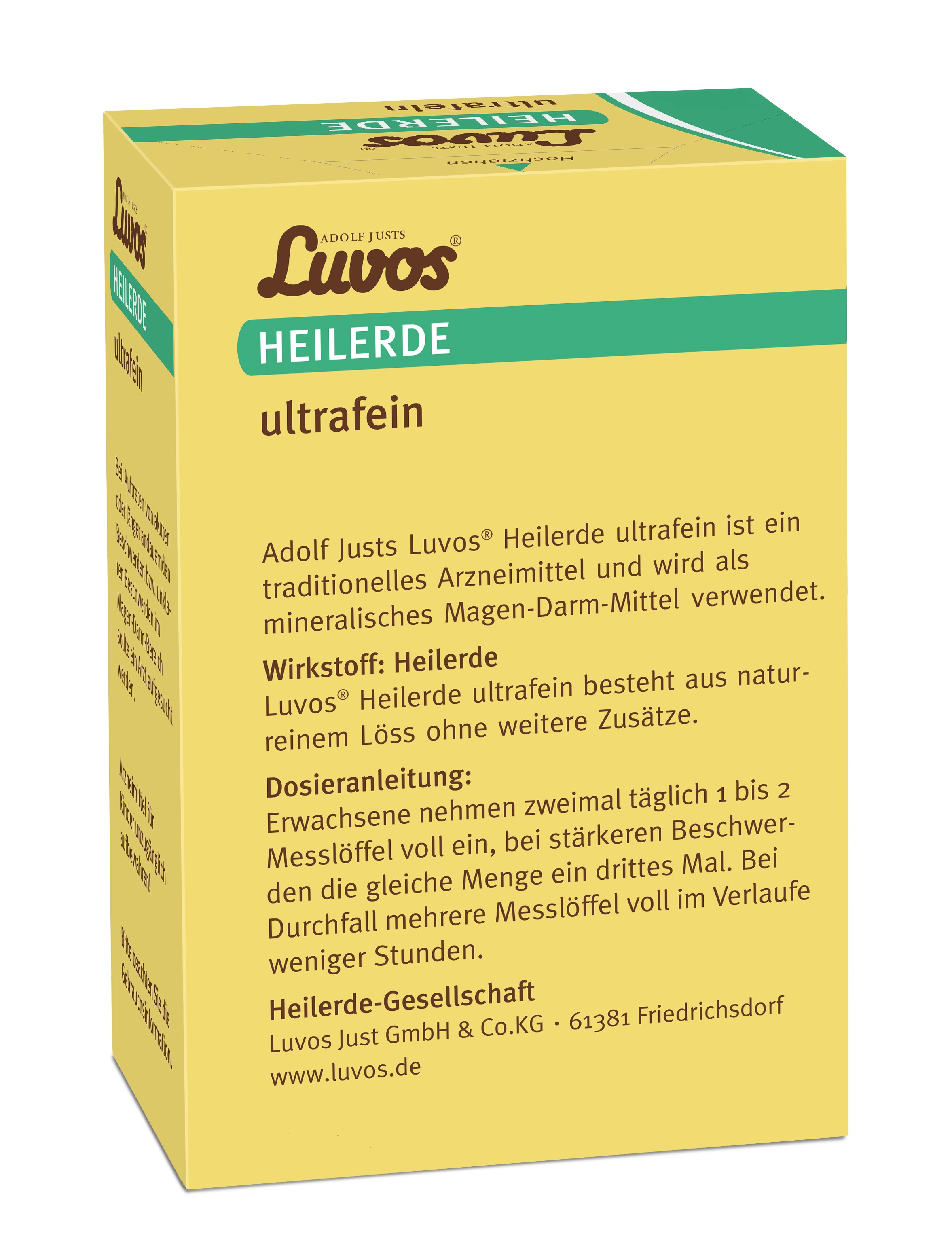 Luvos-Heilerde ist das einzige in Deutschland zugelassene Naturarzneimittel gegen Sodbrennen, säurebedingte Magenbeschwerden und Durchfall mit dem Wirkstoff Heilerde. Luvos-Heilerde ist ein reines Naturprodukt, das in Deutschland aus eiszeitlichem Löss gewonnen wird. In einem speziellen Verfahren wird der Luvos-Löss schonend aufbereitet; dadurch erhält die Luvos-Heilerde ihre idealen Eigenschaften für die therapeutische Anwendung. Entsprechend der gewünschten Wirkung haben die Heilerde-Produkte von Luvos anwendungsspezifische Feinheitsgrade. Luvos-Heilerde enthält keine Zusatzstoffe und ist auch für Veganer geeignet.