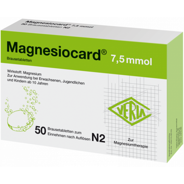 Magnesiocard® 7,5 mmol bewährt sich seit vielen Jahren als Arzneimittel mit höchsten Qualitätsstandards in der Therapie von Magnesiummangelzuständen. Die hochwertige Brausetablette schmeckt frisch nach Citrus und kann einfach in einem Glas Wasser aufgelöst werden. So wird auch die tägliche Flüssigkeitsaufnahme unterstützt. Durch die moderate Dosierung von Magnesiocard® 7,5 mmol ist es individuell gut dosierbar und kann ganz nach Bedarf über den Tag verteilt getrunken werden. Dies erhöht die Bioverfügbarkeit von Magnesium, da kleine Mengen effektiver aufgenommen werden können als große Einmal-Dosen. Magnesiocard® 7,5 mmol enthält zudem organisches Magnesiumaspartat-Hydrochlorid für eine gute Aufnahme im Körper.