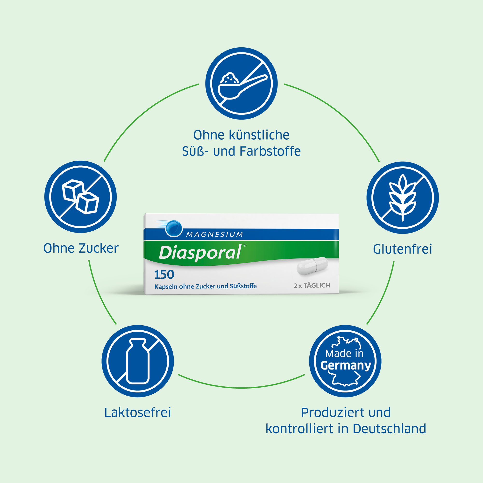 Magnesium-Diasporal® 150, Kapseln (Wirkstoff: Magnesiumoxid) Anwendungsgebiet: Magnesiummangel, wenn er Ursache für Störungen der Muskeltätigkeit (Neuromuskuläre Störungen, Wadenkrämpfe) ist. Zu Risiken und Nebenwirkungen lesen Sie die Packungsbeilage und fragen Sie Ihren Arzt oder Apotheker. Protina Pharm. GmbH, D-85737 D-Ismaning