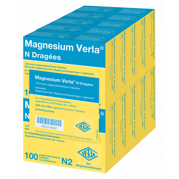 Seit mehr als 65 Jahren bewähren sich Magnesium Verla® N Dragées als Arzneimittel mit höchsten Qualitätsstandards in der Therapie von Magnesiummangelzuständen. Magnesium wird am besten vom Körper aufgenommen, wenn kleinere Mengen über den Tag verteilt eingenommen werden. Durch die niedrige Dosierung von Magnesium Verla® N Dragées sind sie individuell gut dosierbar und können ganz nach Bedarf zu verschiedenen Tageszeiten eingenommen werden. Sie haben einen leckeren Geschmack nach Vanille und lassen sich sehr leicht schlucken. Die magensaftresistenten Dragées sind außerdem gut verträglich. Zusätzlich werden in Magnesium Verla® N Dragées ausschließlich organische Magnesiumverbindungen für eine gute Aufnahme und Bioverfügbarkeit im Körper verwendet.