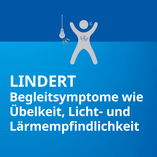 - Kann auch Aura-Begleitsymptome wie Übelkeit, Licht- oder Lärmempfindlichkeit lindern