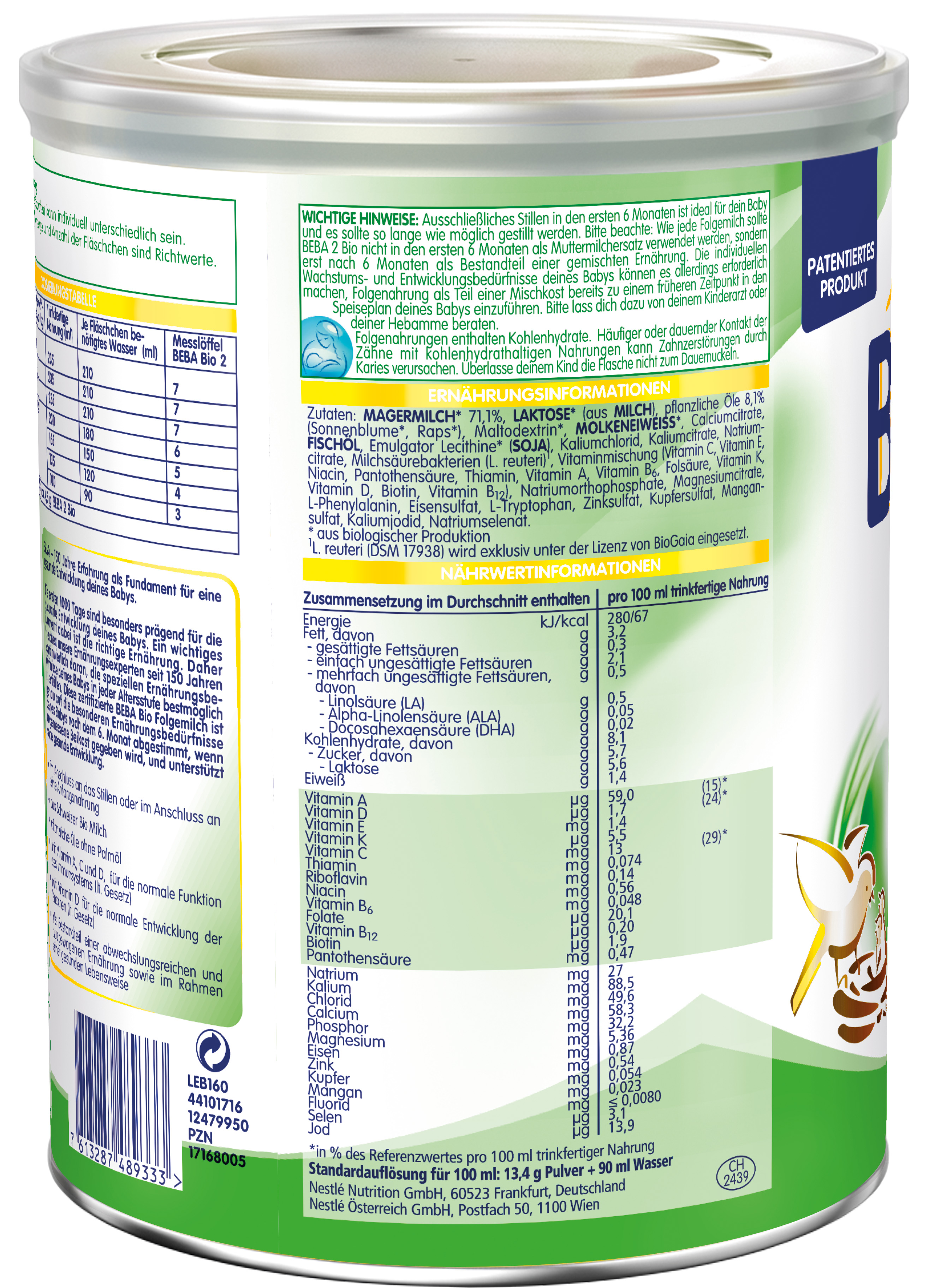 BEBADiätetisches Lebensmittel für besondere medizinische Zwecke (ergänzende bilanzierte Diät). Nur unter ärztlicher Aufsicht verwenden. Außerhalb der Reichweite von Kindern aufbewahren. Kein vollständiges Lebensmittel und kein Ersatz für eine abwechslungsreiche, ausgewogene Ernährung und eine gesunde Lebensweise.