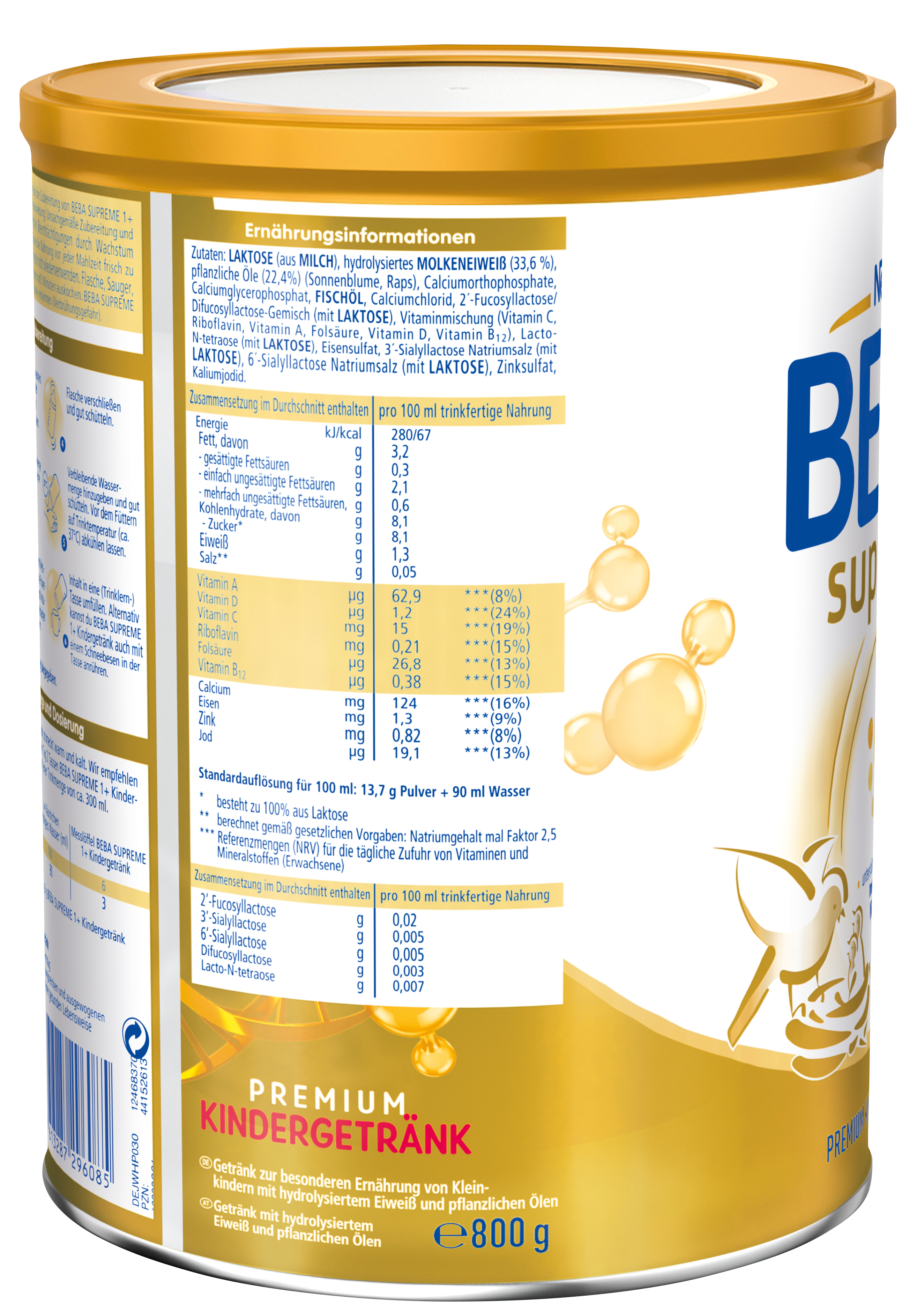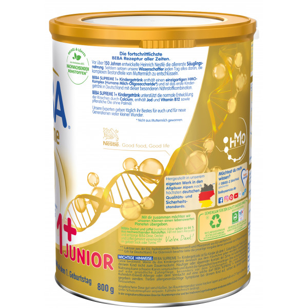 BEBA SUPREME 1+ Kindergetränk basiert auf den neusten Erkenntnissen der Muttermilchforschung: Es enthält einen einzigartigen HMO-Komplex und ist das erste Kindergetränk in Deutschland mit dieser besonderen Nährstoffkombination. Die Humanen Milch-Oligosaccharide* (HMO) sind einzigartige Bausteine und identisch mit denen, die natürlicherweise in der Muttermilch vorkommen.