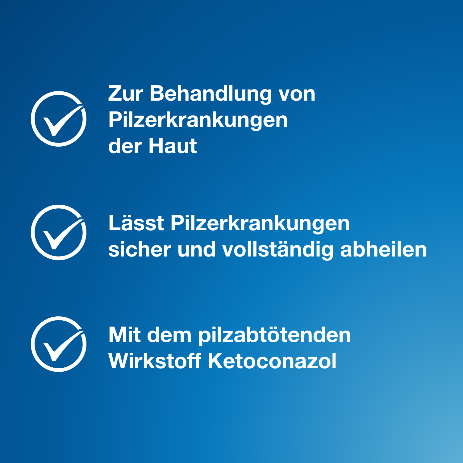 Ohne ärztlichen Rat sollten Sie das Arzneimittel nicht länger als 2 Wochen anwenden, wenn keine Besserung der Beschwerden nach dieser Zeit eingetreten ist. Die Anwendung sollte nach eingetretener Beschwerdefreiheit noch mindestens einige Tage fortgesetzt werden. Die durchschnittliche Behandlungsdauer beträgt: bei Hefepilz-Infektionen 2-3 Wochen, bei Hautpilz-Infektionen 3-4 Wochen, bei Fußpilz 4-6 Wochen.