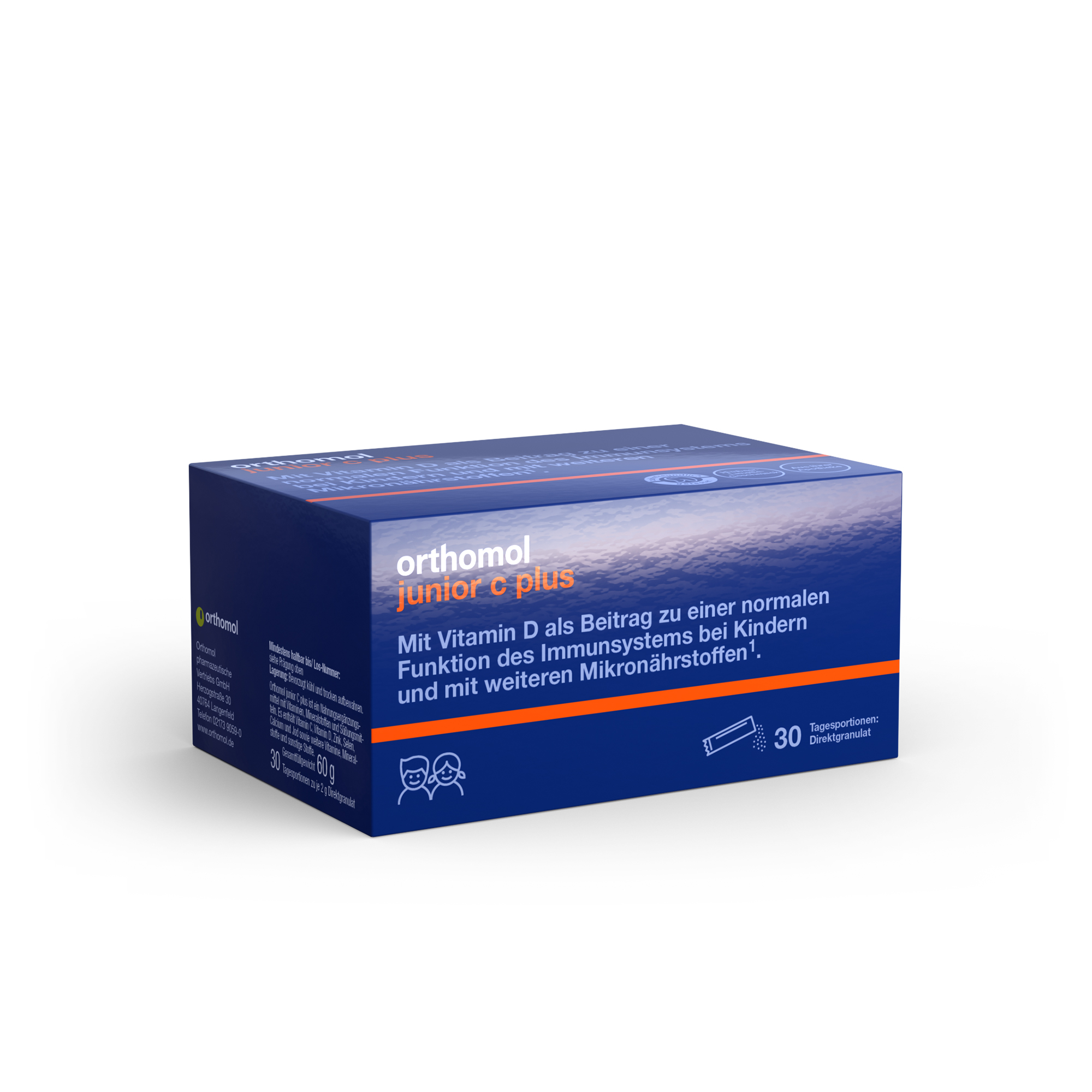 Orthomol junior C plus ist ein Nahrungsergänzungsmittel für Kinder. Mit Vitamin D als Beitrag zu einer normalen Funktion des Immunsystems bei Kindern und mit weiteren Mikronährstoffen1.
