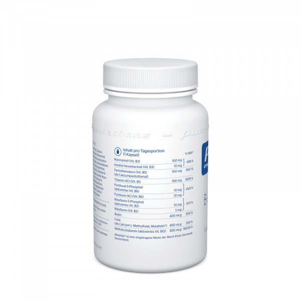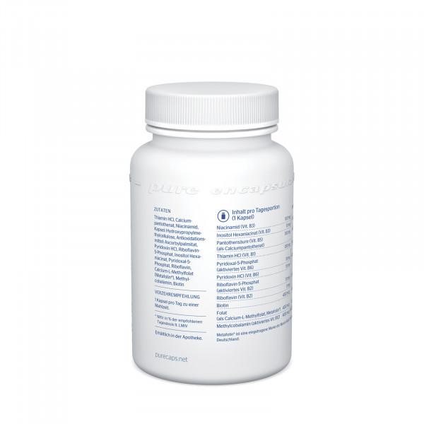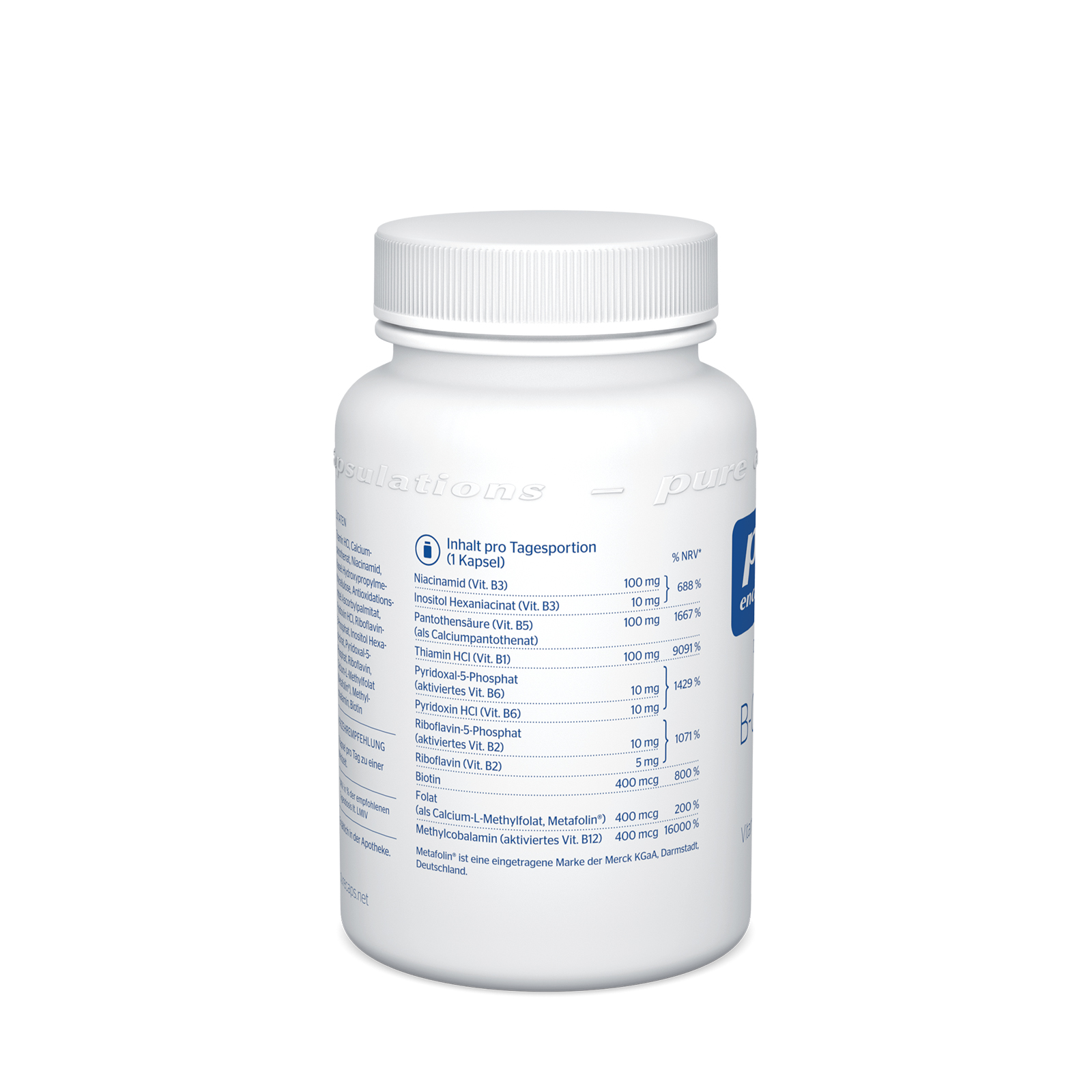 B-Vitamine sind wichtige Regulatoren und Aktivatoren im Stoffwechsel. So trägt z.B. Biotin zu einem normalen Stoffwechsel von Makronährstoffen (Fette, Eiweiß, Kohlenhydrate) bei. Bestimmte B-Vitamine, welche sich im Komplex synergistisch verhalten, sind auch an der Blutbildung und der Versorgung des Nervensystems beteiligt. Zudem haben B-Vitamine Einfluss auf die Erregungsleitung und die Regulation der Hormon-Aktivität*. Die B-Vitamine gehören zu den wasserlöslichen Vitaminen, werden im Organismus schlecht gespeichert und sollten deswegen regelmäßig zugeführt werden. B-Complex Plus von Pure Encapsulations® ist ideal dosiert und beinhaltet B-Vitamine in ihrer aktivierten Form!