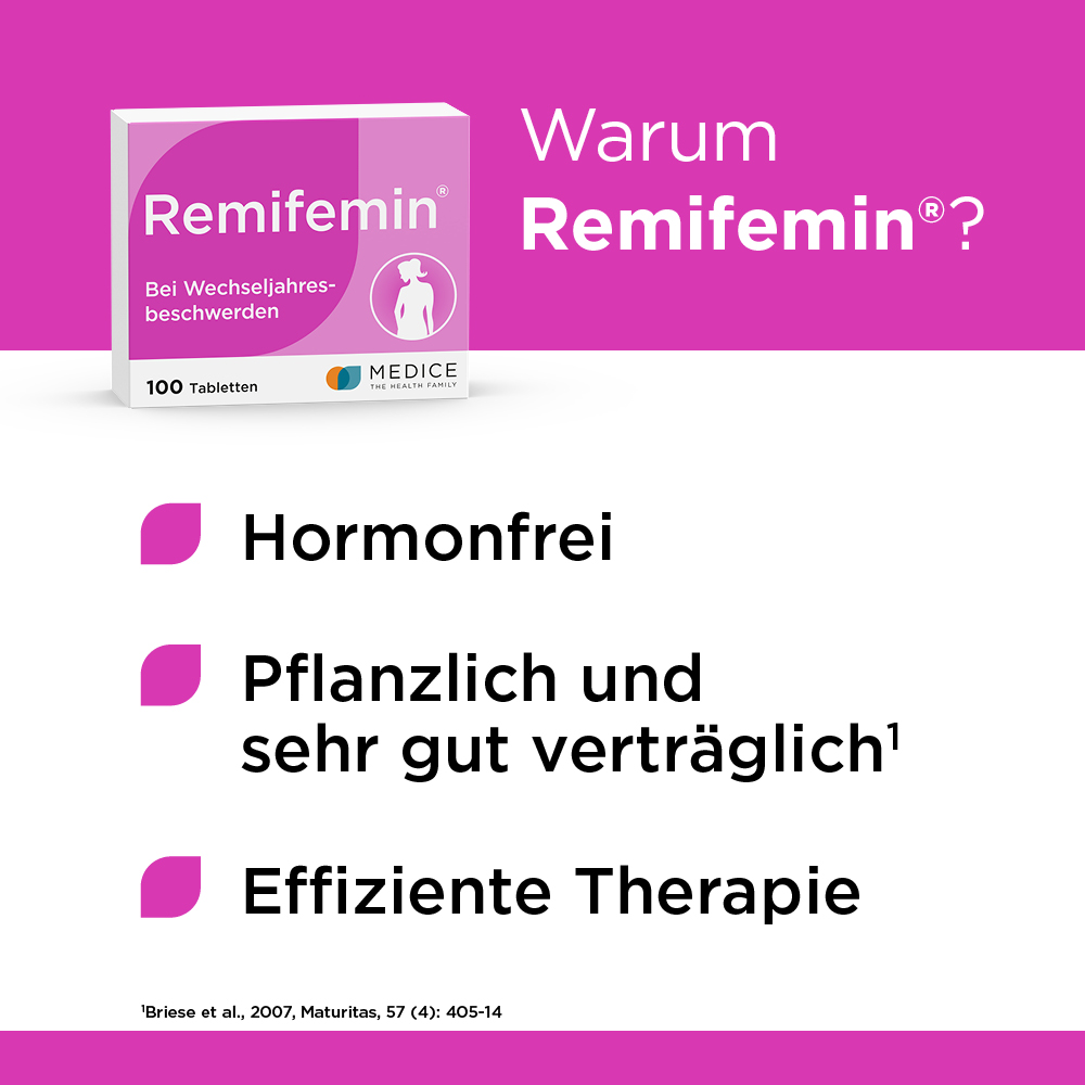 Remifemin hat sich gerade bei leichteren Symptomen wie Hitzewallungen, Schweißausbrüche und Schlafstörungen bzw. im weiteren Verlauf der Wechseljahre besonders bewährt und so einer Vielzahl von Frauen weltweit auf gut verträgliche Art und Weise Linderung gebracht.
