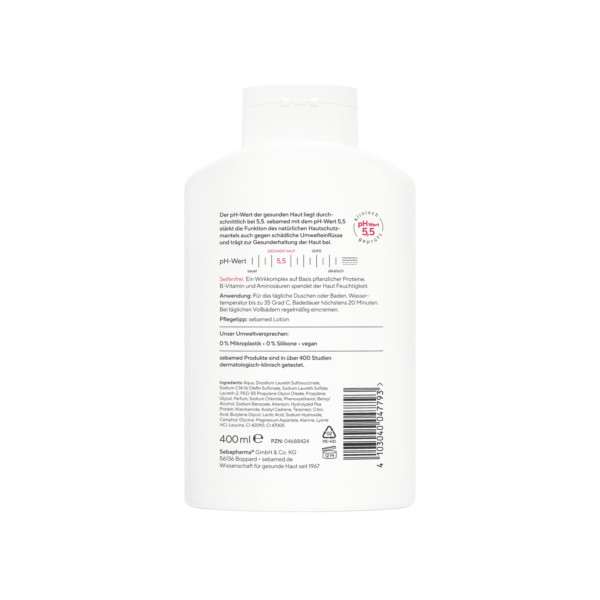 Die aufgeführten Inhaltsstoffe entsprechen dem aktuellen Stand der Produktion. Unsere Firmenphilosophie „Wissenschaft für gesunde Haut“ lassen wir durch regelmäßige Überarbeitung unserer Rezepturen – auf Basis wissenschaftlicher Erkenntnisse – in die sebamed Produkte einfließen. Daher sind immer die Informationen auf dem Produkt ausschlaggebend.