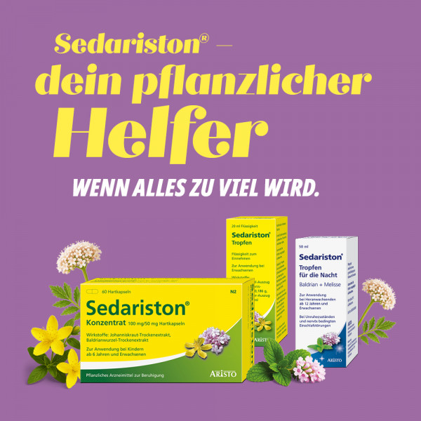 Die Sedariston® Tropfen wirken beruhigend bei nervlicher Belastung, zur Unterstützung des Schlafs und bei nervösem Magen und Darm. Ohne Tagsüber müde zu machen und ohne Abhängigkeitspotential. Die Sedariston® Produktfamilie gehört zu den Klassikern der pflanzlichen Beruhigungsmittel.