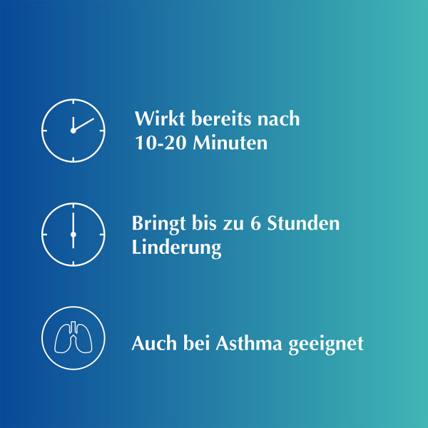 - Wirkt bereits nach 10-20 Minuten, bis zu 6 Stunden