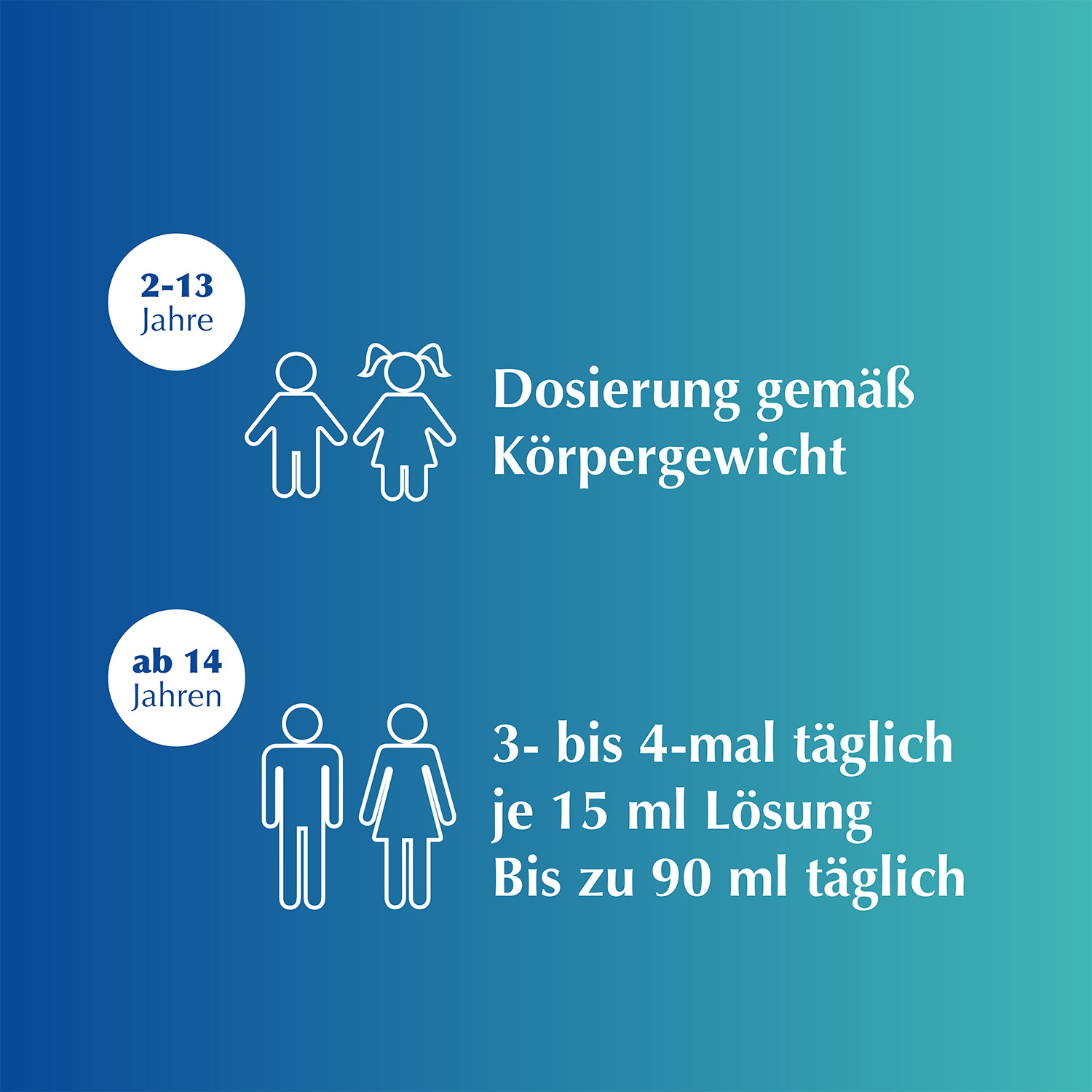 | Jugendliche ab 14 Jahren und Erwachsene | 15 ml | 3-4 mal täglich | im Abstand von 6-8 Stunden |