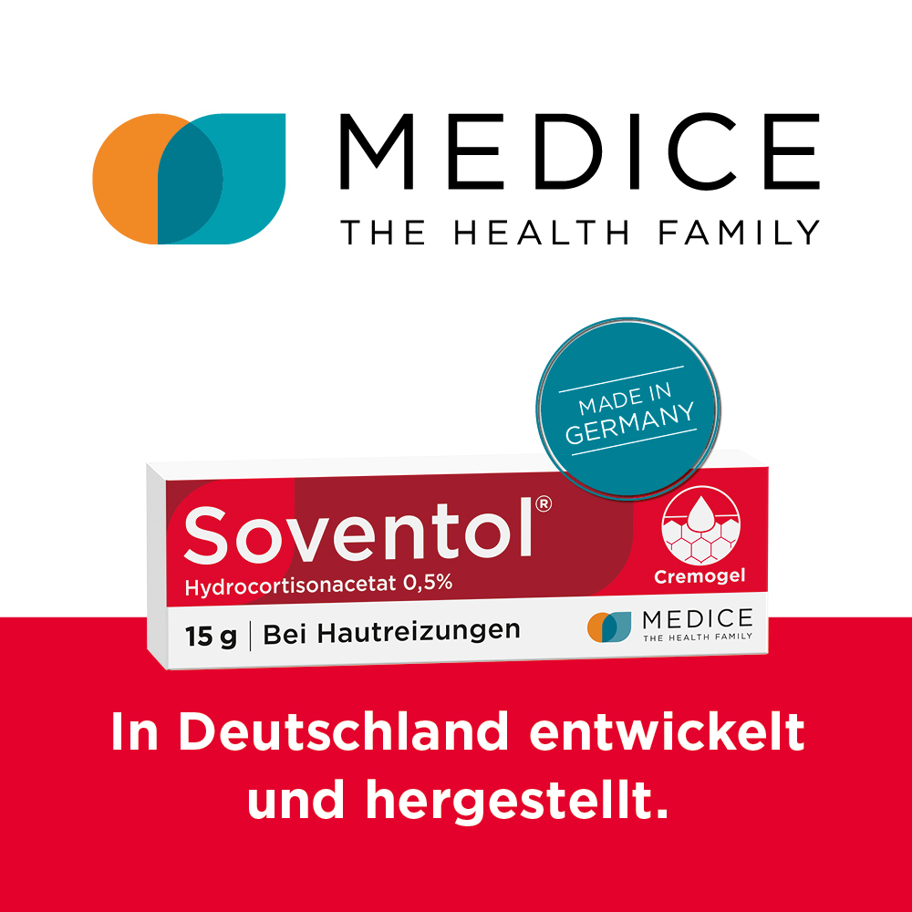 Soventol® HydroCortisonACETAT 0,5% überzeugt zudem durch eine innovative Galenik: Die Cremogel-Formulierung wurde eigens von Hautärzten entwickelt. Das Cremogel kühlt wie ein Gel und pflegt wie eine Creme.