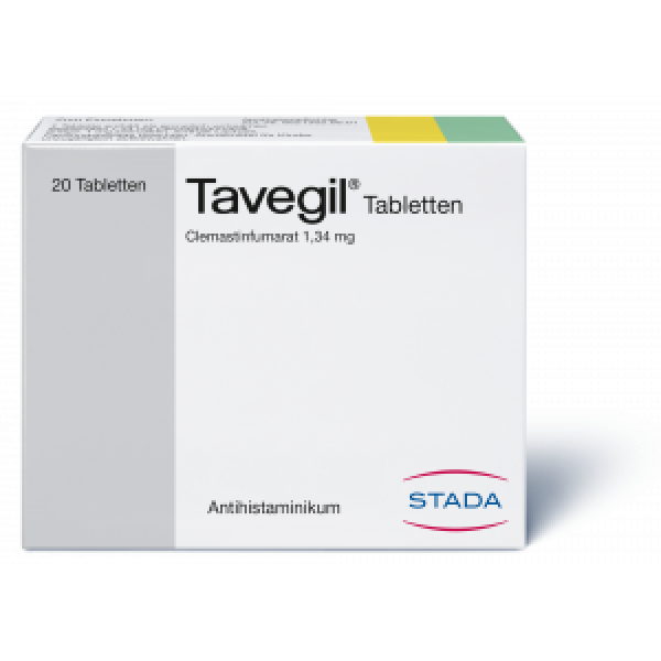 Wirkstoff: Clemastinfumarat 1,34 mg. Anwendungsgebiete: chronische idiopathische Urticaria (Nesselsucht ohne erkennbare Ursache) und symptomatische Linderung von allergischer Rhinitis (Heuschnupfen und ganzjährigem allergischem Schnupfen), wenn gleichzeitig eine Ruhigstellung angezeigt ist.